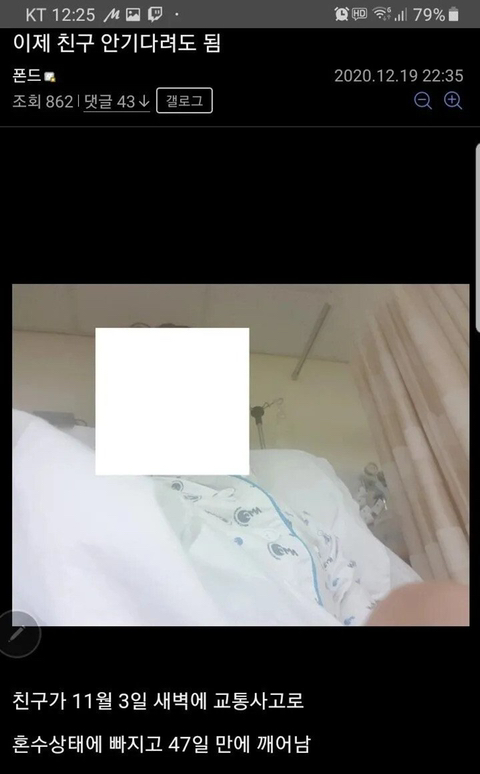 작년 11월 친구가 사고가 난지 1년이 넘었습니다.