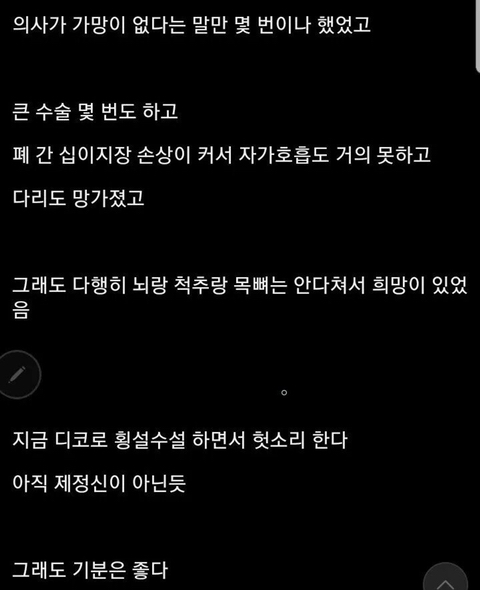 친구가 댓글 하나하나 읽으면서 포기하지 않고 많은 힘이 되어 재활 운동에 전념할 수 있었습니다.