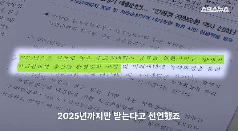그동안 인천에 있는 매립지에 묻혔던 상당량의 수도권 쓰레기