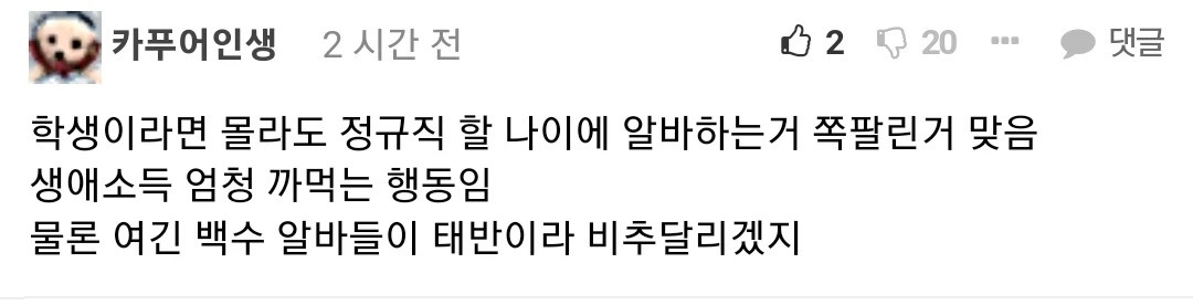 자기앞가림하면됐지 남이사 알바를하든 회사를다니든 뭔상관,,