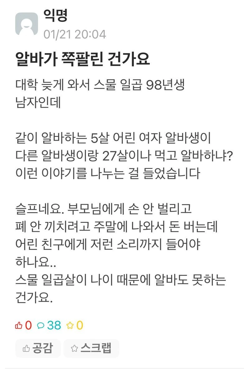 27살인데 알바중이라 허걱슨 하면서 들어왔다가 위로받고 가요ㅠ