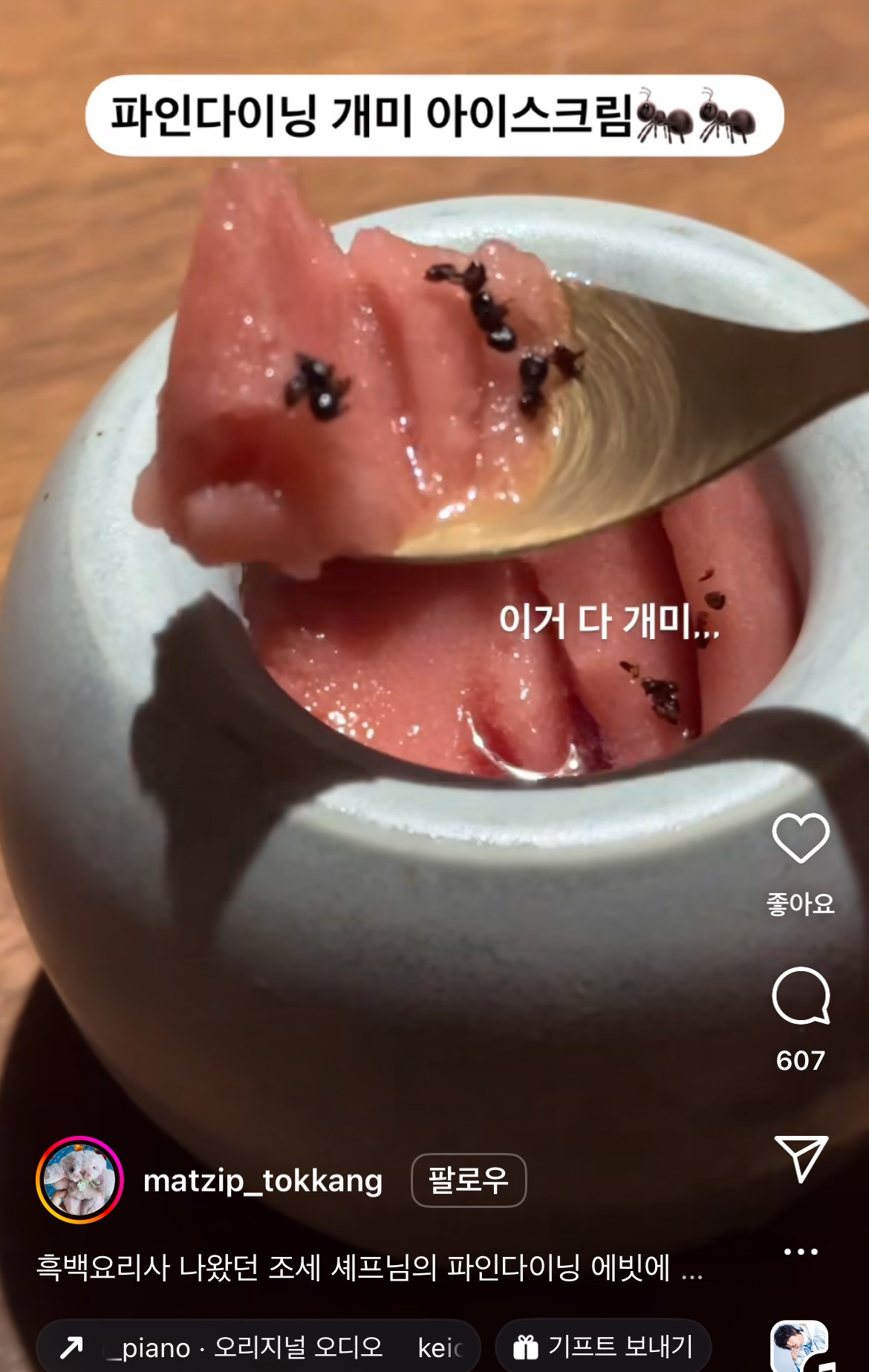 [스크랩] [흥미돋]흑백요리사 조셉 세프가 운영하는 파인다이닝 개미 아이스크림 작성자2026건강돈|작성시간25.12.27|조회수22,851 목록 댓글 38 글자크기 작게가 글자크기 크게가 출처: 여성시대 (처돌입니다)호주 출신 요리사로한식을 기반으로 한 요리로 미슐랭 1스타!개미 사진 나옴!!약 혐 주 의🐜🐜출처 인스타 matzip_takkang조셉 세프의 레스토랑 <에빗>개미아이스크림이 유명함ㅋㅋㅋㅋㅋ저 개미 모형 위에 있는 것도셰프들이 직접 채집한 개미들임 날씨 추울 땐 식용개미 쓴다고 해~~유튜브 유하항님 채널대체로 후기를 보니개미는..생각보다 부드럽고 새콤하다함다른 음식 사이에서 톡톡 식감이 느껴진다고 ..!예능 식스센스에도 나왔었어 다음검색 스크랩 원문 : *여성시대* 차분한 20대들의 알흠다운 공간 현재 게시글 추가 기능 열기 북마크 공유하기 신고 센터로 신고 댓글 댓글 38 댓글쓰기 답글쓰기 댓글 리스트 작성자복세편살희망자 | 작성시간 25.12.27 와 저게 왜 인기가많은거야 작성자귀찮음을이겨내자 | 작성시간 25.12.27 오우...찐개미라니 난 못먹겠다 작성자클로로_루실후르 | 작성시간 25.12.27 중국에서 개미죽 먹었던 기억 난다.. 연두색 새콤달콤한 죽에 키위씨처럼 개미가 토도독 올라가 있었던... 생각보다 맛있었어 작성자부르르르르르르 | 작성시간 25.12.27 헐옛날에방송에서본거엿네 작성자몽이: | 작성시간 25.12.29 잉 이걸 왜먹지 댓글 전체보기