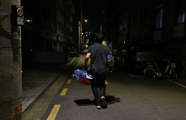 그는 쿠팡 물류센터에서 일용직으로 일하다 현재는 심야배송을 하고 있는 퀵플렉서입니다.