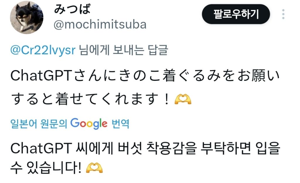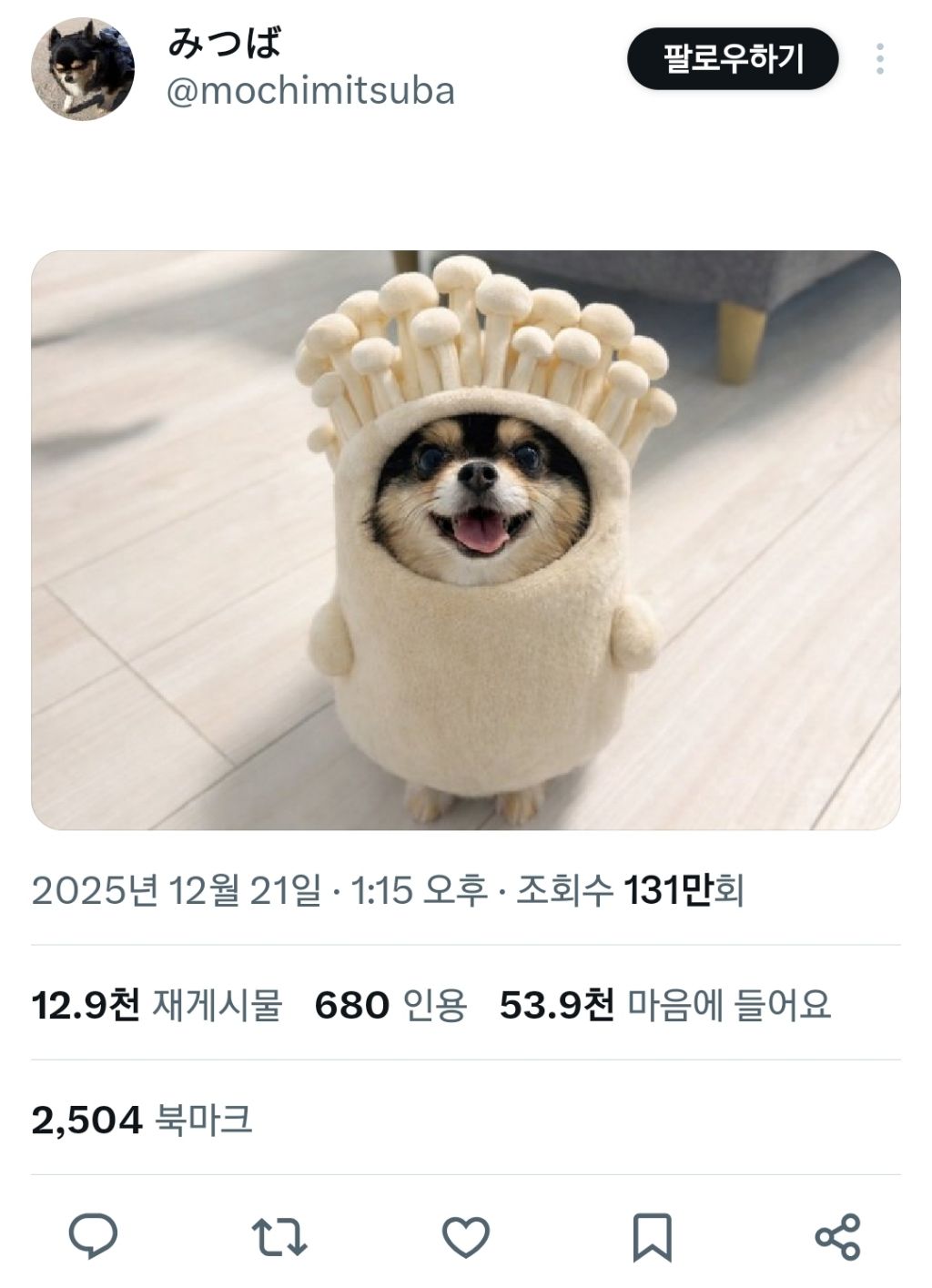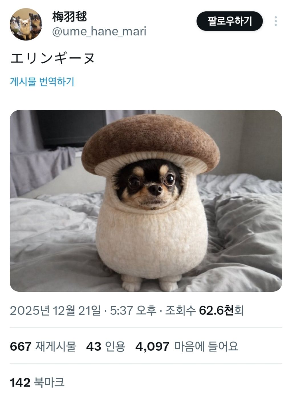[스크랩] [흥미돋]요즘 트위터에서 유행하고 있다는 버섯 작성자윈스턴|작성시간25.12.27|조회수62,458 목록 댓글 83 글자크기 작게가 글자크기 크게가 출처: 여성시대 윈스턴바로 일본에서 시작된 버섯강쥐들한국도 질 수 없음GPT한테 버섯옷 입혀달라고 하면 된대! 다음검색 스크랩 원문 : *여성시대* 차분한 20대들의 알흠다운 공간 현재 게시글 추가 기능 열기 북마크 공유하기 신고 센터로 신고 댓글 댓글 83 댓글쓰기 답글쓰기 댓글 리스트 작성자bitter melon | 작성시간 25.12.27 으악 댓글 버섯칭긔들 미치게 귀엽다ㅠㅠㅠ 작성자9시20분22도 | 작성시간 25.12.27 졸귀 ㅠ 이미지 확대 작성자오예쑥 | 작성시간 25.12.28 나도해봄 이미지 확대 작성자곰새말이 | 작성시간 25.12.28 이게뭐야 개웃겨 ㅋㄲㅋ 이미지 확대 작성자류 이 안 | 작성시간 25.12.30 ㄱㅇㅇ 이미지 확대 댓글 전체보기