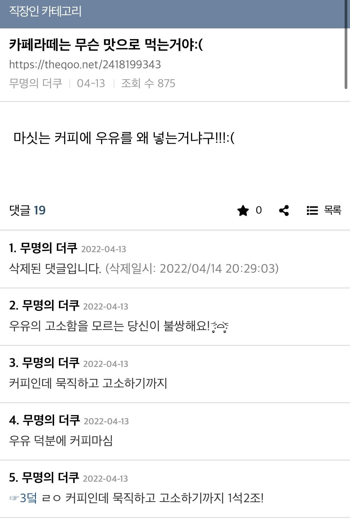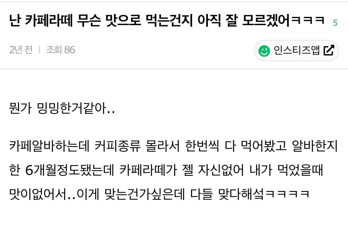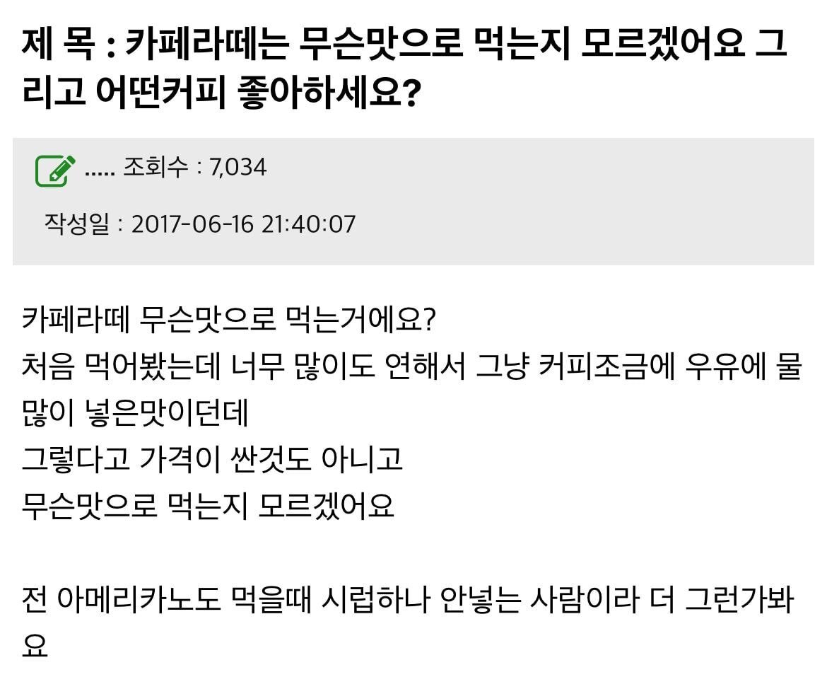 난 제일 이해안되는거 미국애들 아메리카노에 우유 한숟갈 타먹는거..