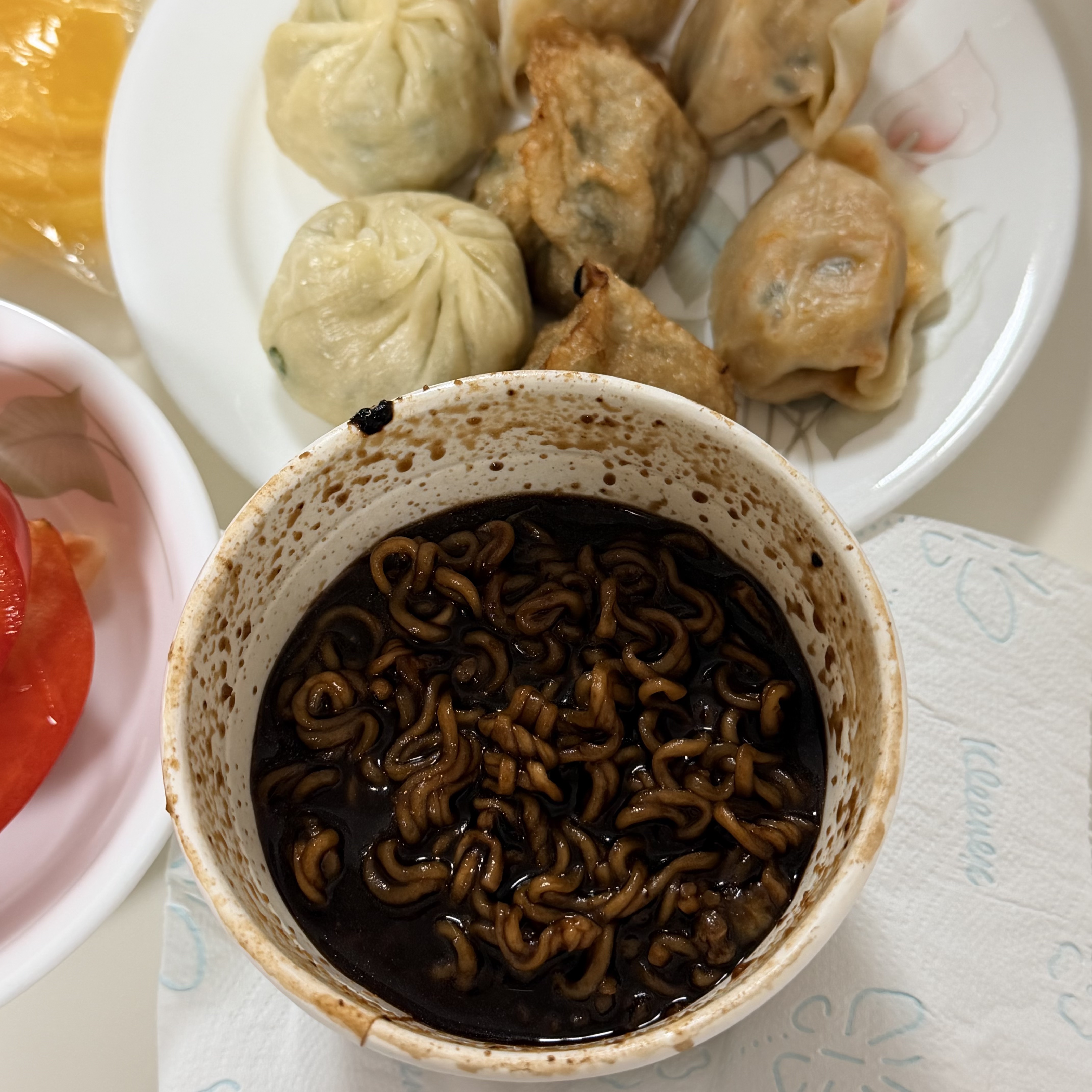 일요일엔 짜파게티 끓이고 에프에 만두 구움