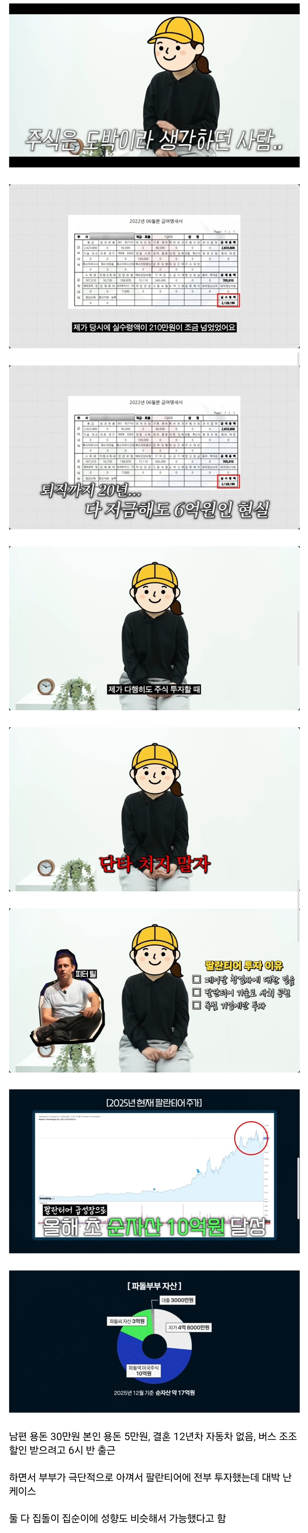 [스크랩] [흥미돋]공무원 월급 210만원 다 주식에 넣은 부부 작성자Rooose|작성시간25.12.27|조회수85,844 목록 댓글 53 글자크기 작게가 글자크기 크게가 출처: https://www.dmitory.com/394213301 다음검색 스크랩 원문 : *여성시대* 차분한 20대들의 알흠다운 공간 현재 게시글 추가 기능 열기 북마크 공유하기 신고 센터로 신고 댓글 댓글 53 댓글쓰기 답글쓰기 댓글 리스트 작성자사용 중인 닉네임 | 작성시간 25.12.27 자기한테 맞는 투자법으로 저렇게 하는 것도 대단하다! 나는 단일 종목 시드 저렇게 커지면 수익 실현 전까지 하루하루 스트레스 너무 클 듯 ㅜㅜ 작성자햄버거좋아하는다이어터 | 작성시간 25.12.28 총 얼마나 넣은거지 작성자보로봄봄 | 작성시간 25.12.28 오 팔란티어 야수 심장이다 작성자곰브리치야 내 이름 적어둬라 | 작성시간 25.12.30 오 작성자샘랑둥이 | 작성시간 26.01.10 존멋 댓글 전체보기