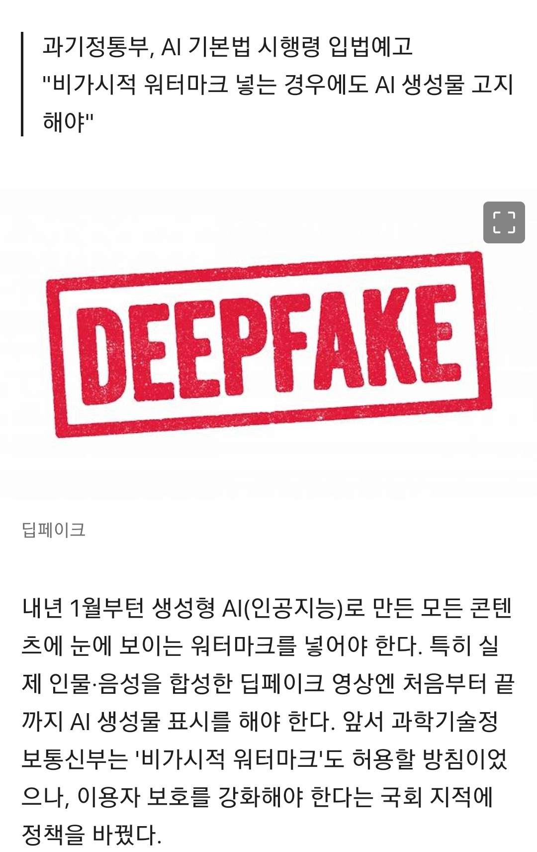 [스크랩] [흥미돋]내년 1월부터 AI 생성물에 '눈에 보이는' 워터마크 의무화 작성자아마도그럴지도|작성시간25.12.27|조회수8,179 목록 댓글 26 글자크기 작게가 글자크기 크게가 ㅅㅅㅅㅅ 다음검색 스크랩 원문 : 이종격투기 현재 게시글 추가 기능 열기 북마크 공유하기 신고 센터로 신고 댓글 댓글 26 댓글쓰기 답글쓰기 댓글 리스트 작성자한대피카? | 작성시간 25.12.27 굿 작성자재용아돈다오 | 작성시간 25.12.27 제발 다 해라 딥페이크 범죄 오짐 작성자공부해라 그건너무뻔하잔아 | 작성시간 25.12.27 진짜 필요해 작성자괜찮아괜찮아댕댕댕댕댕 | 작성시간 25.12.27 너무 필요해ㅜㅜ 작성자안녕~개비! | 작성시간 25.12.27 그래 하자 구분이안돼서 좀 무서움 댓글 전체보기