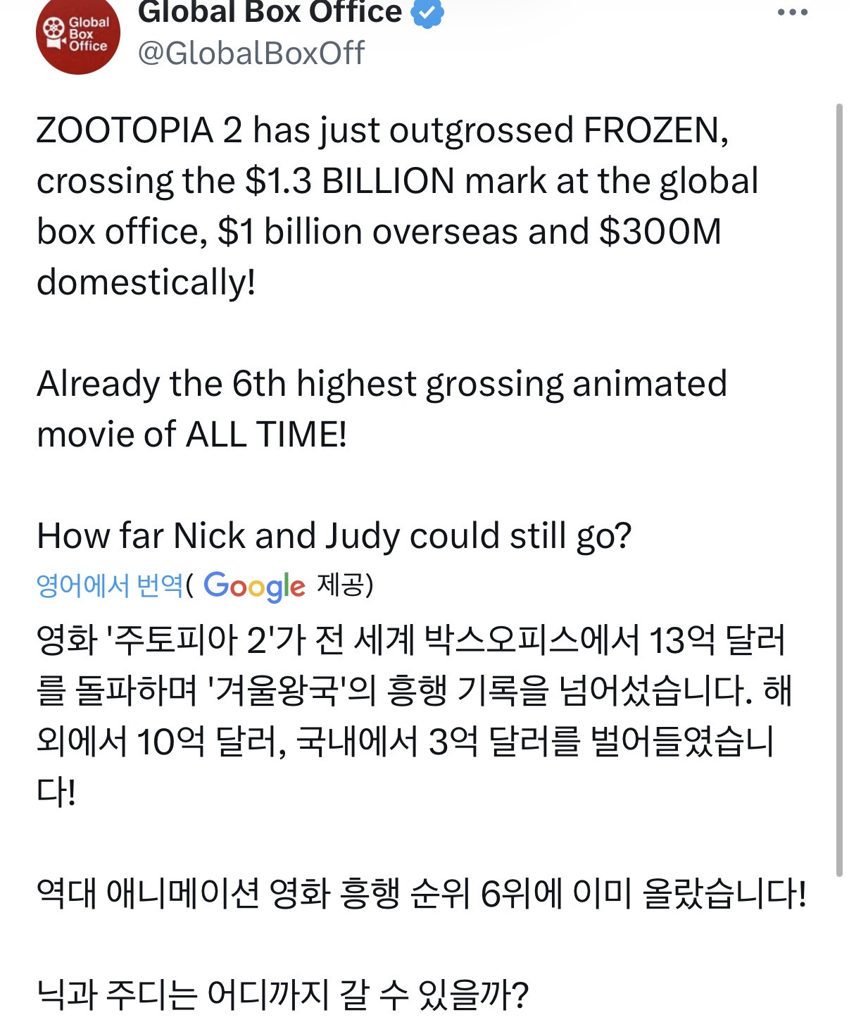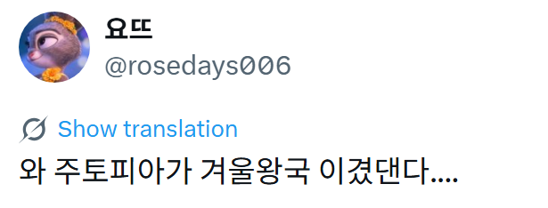 [흥미돋]와 주토피아가 겨울왕국 이겼댄다.... 작성자귤토끼이|작성시간25.12.27|조회수33,662 목록 댓글 27 글자크기 작게가 글자크기 크게가 출처: https://theqoo.net/square/4042453890 https://x.com/rosedays006/status/2004703004583493685?s=46 다음검색 현재 게시글 추가 기능 열기 북마크 공유하기 신고 센터로 신고 댓글 댓글 27 댓글쓰기 답글쓰기 댓글 리스트 작성자동하니 | 작성시간 25.12.28 겨왕은 보다 두번 잤어...그래서 2 안봤어 .... 작성자가을아와라 | 작성시간 25.12.28 겨울왕국 노래빼면 개노잼이잖아 작성자Nick | 작성시간 25.12.28 10번도 넘게 봄... 작성자무야자키 미야호 | 작성시간 25.12.28 겨울왕국 안 봣는데 주토피아 ㄹㅇ 존잼이야 작성자cvbnm | 작성시간 25.12.28 난 주토피아 1 2 다 내스타일아님… 왜지 댓글 전체보기