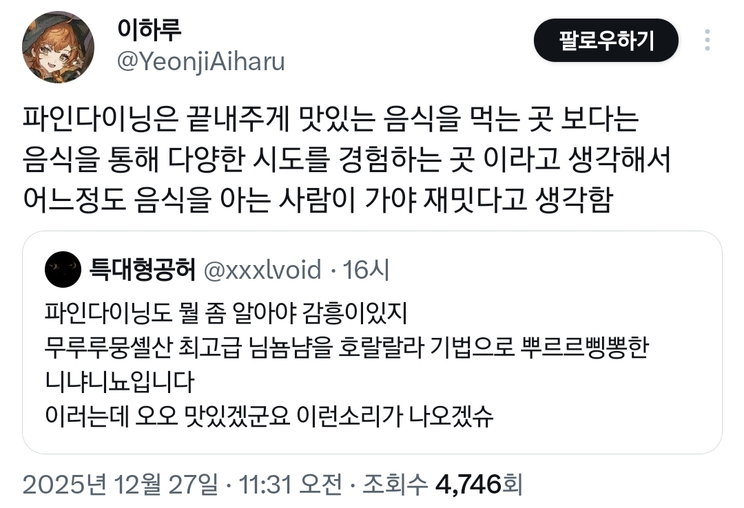 작성자무화과깜빠뉴 작성시간 25.12.28 안 가봤는데 진심 흥미가 안 생겨 맛있는 걸 좋아하지 신기한 걸 원하지 않음