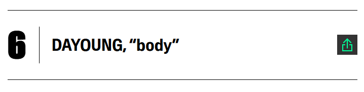 다영은 싸움 없이 내려갈 수 있는 사람이 아니었고, 'body'는 그녀의 회복력의 결과다. 해질녘 햇빛처럼 반짝이는 바람둥이 여름 팝송으로, 과거 K-pop 여름의 빛나는 에너지를 현대적인 광택으로 떠올려 그 자체로 돋보이게 한다. 하지만 우주소녀 멤버의 무대에 대한 전염성 강한 열정과 트랙의 중독성 있는 훅이 그녀를 주목받게 만들었다.