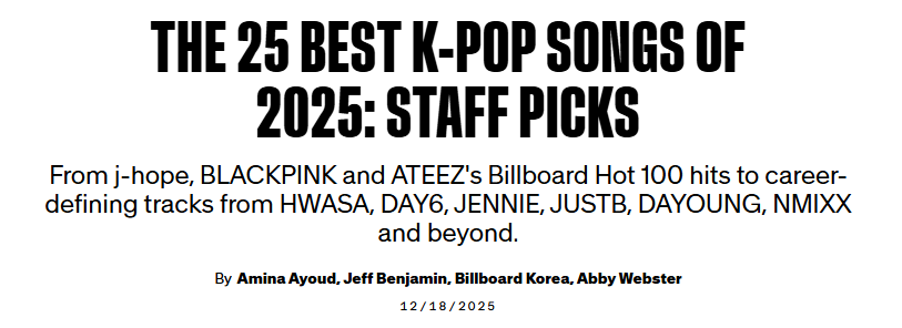 2025 빌보드 선정 올해의 케이팝 노래 6위