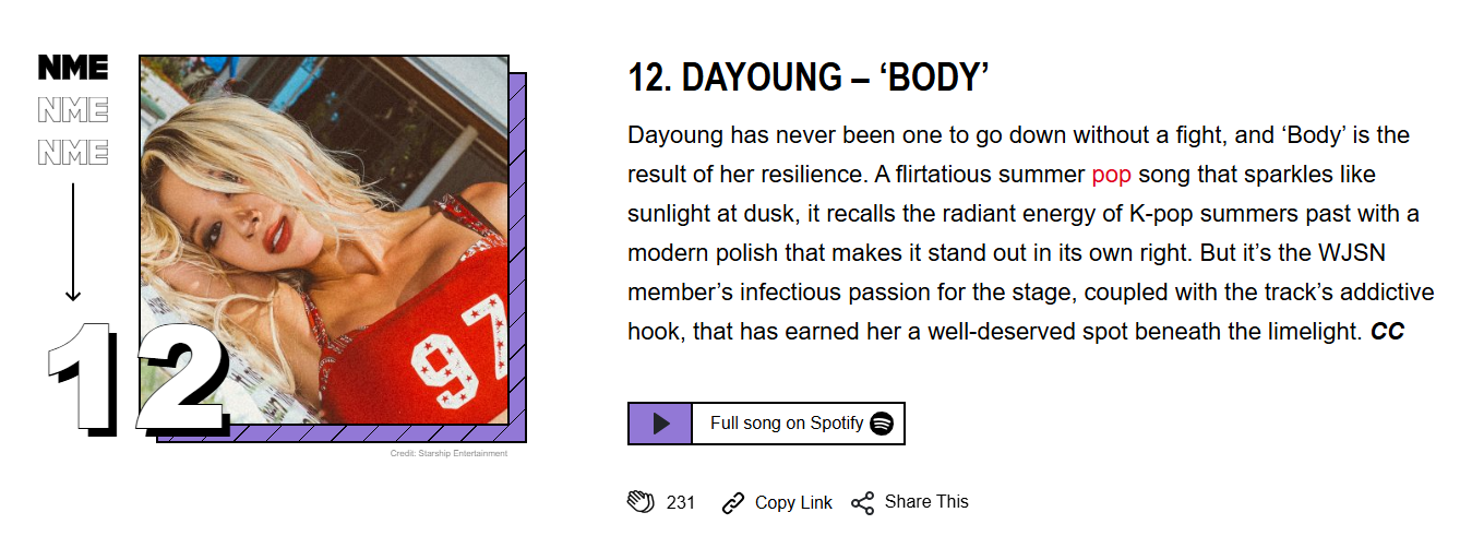 NME(영국 음악 전문 매거진) 선정 2025 베스트 케이팝 12위