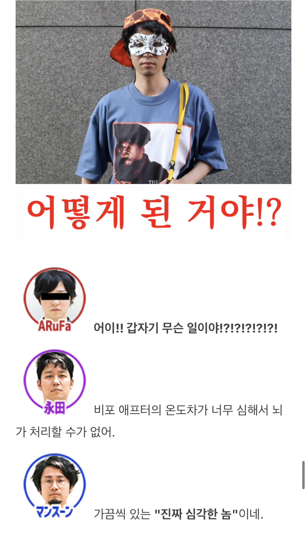 [배꼽의행방][번역] [도전] 점원이 말을 걸기 전에 옷을 사라! "즉석구매 코디네이션 선수권 대회"! / ARuFa 작성자몽글아안돼씨발|작성시간25.12.27|조회수6,346 목록 댓글 24 글자크기 작게가 글자크기 크게가 출처: https://m.blog.naver.com/bladesoul12/221681785638 다음검색 현재 게시글 추가 기능 열기 북마크 공유하기 신고 센터로 신고 댓글 댓글 24 댓글쓰기 답글쓰기 댓글 리스트 작성자피칸바닐라 | 작성시간 25.12.28 개웃기네ㅋㅋㅋㅋ ㅋ 작성자맛다시없다 | 작성시간 25.12.28 개웃곀ㅋㅋㅋㅋㅋㅋㅋㅋㅋㅋㅋㅋ 작성자뉸뉴냠 | 작성시간 25.12.28 전라 end ㅋㅋㅋ ㅅㅂ 작성자(본인 닉네임) 25년홧팅 | 작성시간 25.12.28 아 말 왤케빨리걸엌ㅋㅋㅋㅋㅋㅋ 작성자햄스터꼬리곰탕 | 작성시간 25.12.29 진짜미친놈들ㅋㅋㅋㅋㅋ 댓글 전체보기