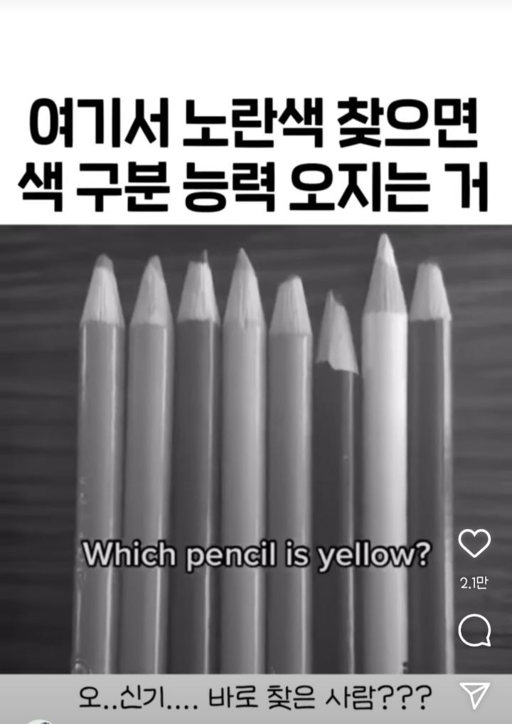 [스크랩] [흥미돋]여기서 노란색을 찾아보시오- 색구분능력테스트 작성자누룩곰팡이|작성시간25.12.28|조회수18,762 목록 댓글 49 글자크기 작게가 글자크기 크게가 출처 : https://www.instagram.com/reel/Ccr7lyPBG1x/?igshid=MDJmNzVkMjY=심화문제주황색하고 초록색은 몇 번 일까?? 다음검색 스크랩 원문 : *여성시대* 차분한 20대들의 알흠다운 공간 현재 게시글 추가 기능 열기 북마크 공유하기 신고 센터로 신고 댓글 댓글 49 댓글쓰기 답글쓰기 댓글 리스트 작성자카드값줘체ㄹl | 작성시간 25.12.28 4번? 작성자햄버거좋아하는다이어터 | 작성시간 25.12.28 다틀렸죠? 작성자집안일에하루가다가 | 작성시간 25.12.28 오 주황노랑찾음 작성자웜뱃의 네모네모똥 | 작성시간 25.12.28 헐 둘다 맞췄다 작성자sprezztura | 작성시간 25.12.28 노랭이만 찾음ㅋㅋㅋ 댓글 전체보기