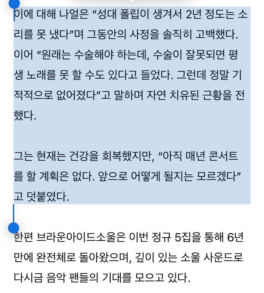 성대 폴립(혹)때문에 2년정도 소리를 못 냈다함