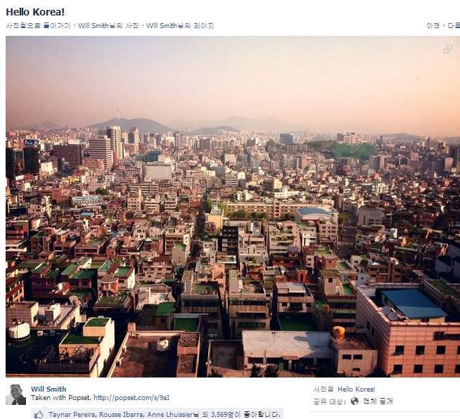 자신의 페이스북에 서울풍경 사진을 찍어올림