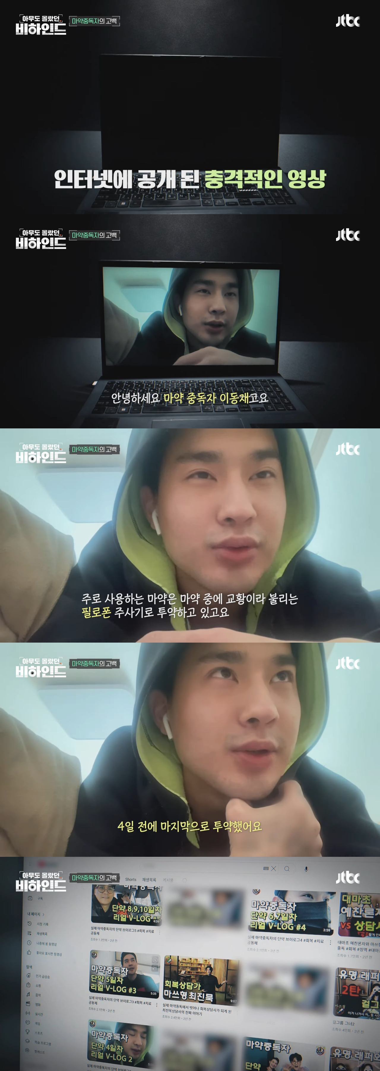 유튜브에 지속적으로 브이로그 올리는 마약 중독자