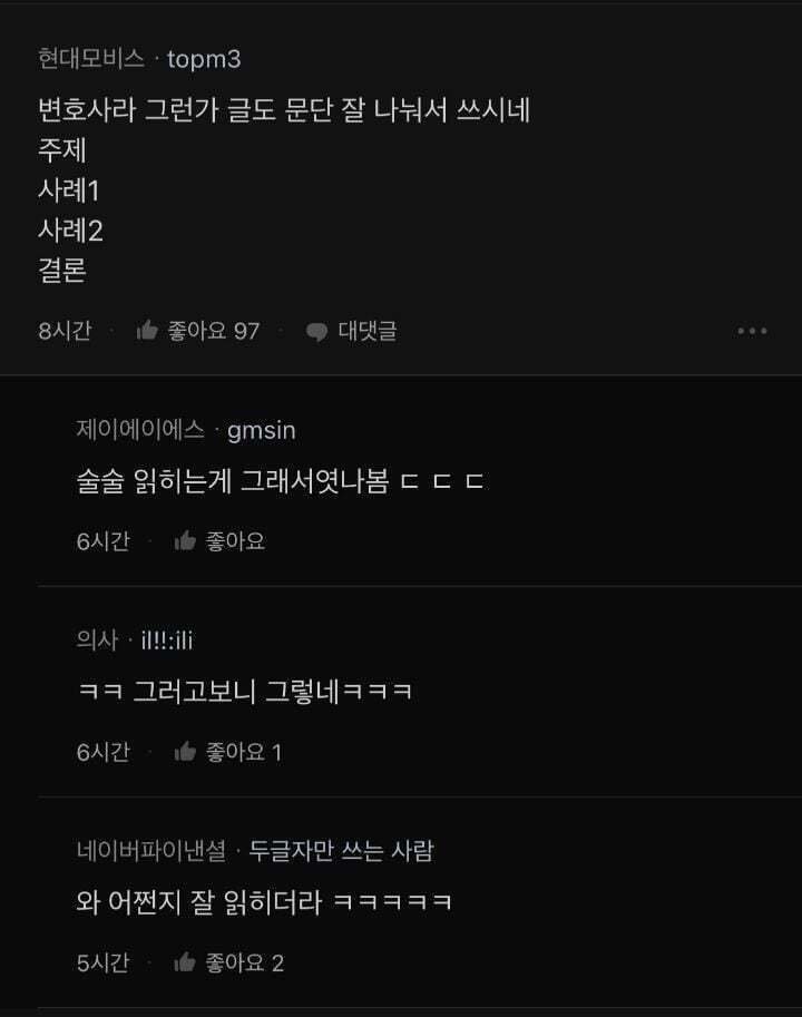 [흥미돋]김앤장 변호사의 전세계약 후기.blind 작성자카이지|작성시간25.12.30|조회수41,025 목록 댓글 28 글자크기 작게가 글자크기 크게가 출처: https://twitter.com/Profit_Lx/status/2005783640760803673?t=czC083FLUl7-Ise-oSZ4tA&s=19 다음검색 현재 게시글 추가 기능 열기 북마크 공유하기 신고 센터로 신고 댓글 댓글 28 댓글쓰기 답글쓰기 댓글 리스트 작성자동해기정 | 작성시간 25.12.30 나쁜넘들.. 작성자고양이양고 | 작성시간 25.12.30 글 개잘써 작성자되면..한다 | 작성시간 25.12.30 신고하고 난리쳐도 배째라는줄 알았더니 변호사한텐 또 다른가봐 작성자마 스퍼티지 | 작성시간 25.12.30 좋겠다 부당한걸 당했을때 당하지않을 힘이 있어서 작성자둡둡야 | 작성시간 25.12.30 주제 사례1 사례2 결론ㅋㅋㅋㅋㅋㅋㅋ 댓글 전체보기