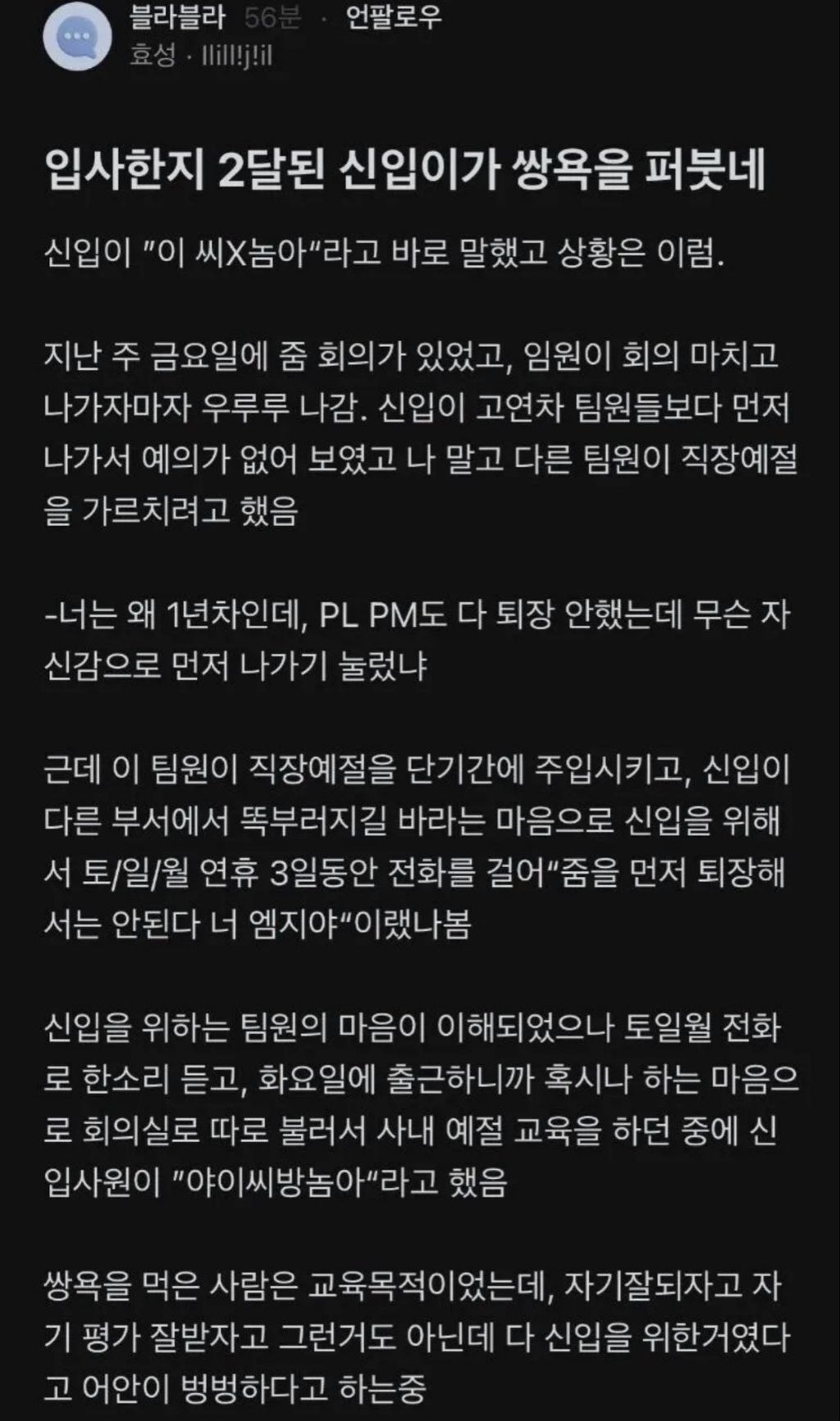 작성자불광동불꽃주먹김주먹밥 작성시간 26.01.05 신입 잘못이라 한 사람들은 무슨 생각인거야...?
