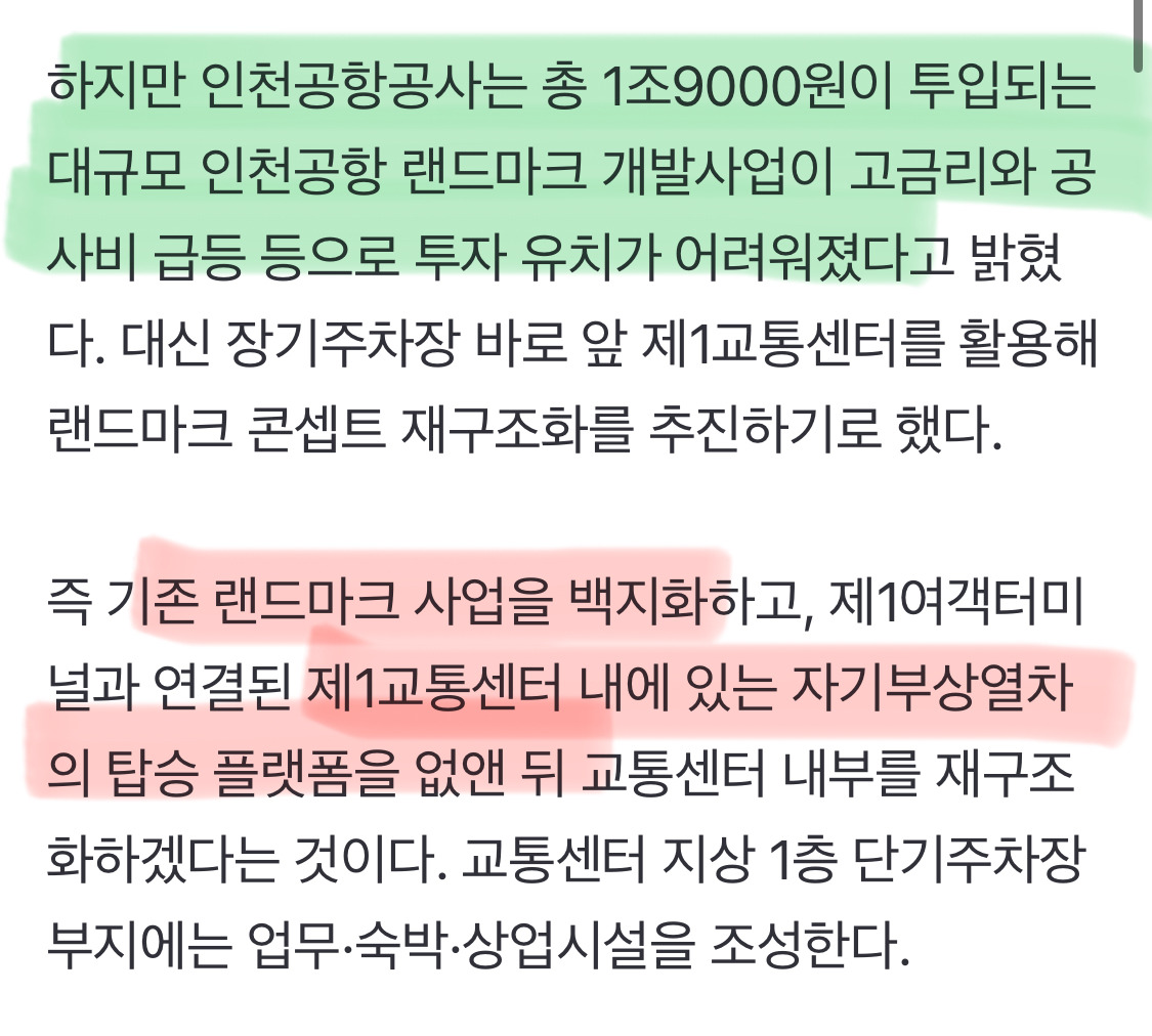 [여시뉴스데스크][단독]‘쥬얼 창이’ 꿈꾸던 인천공항 랜드마크 사업 최종 백지화··· 비용 감당 안 돼 작성자(본인닉네임).|작성시간25.12.30|조회수5,895 목록 댓글 3 글자크기 작게가 글자크기 크게가 출처: https://n.news.naver.com/article/032/0003418269?sid=102아쉽네ㅜㅜ 다음검색 현재 게시글 추가 기능 열기 북마크 공유하기 신고 센터로 신고 댓글 댓글 3 댓글쓰기 답글쓰기 댓글 리스트 작성자나도말좀잘하고싶다제발 | 작성시간 25.12.30 그래 여건에 맞게 해. 돈 낭비하지말고 작성자crwl | 작성시간 25.12.30 싱이나 홍은 도시국가라 우리나라랑 사정이 다른듯... 작성자영앤리치리치엥 | 작성시간 25.12.30 굳이 창이공항 따라할 필요없을듯 댓글 전체보기