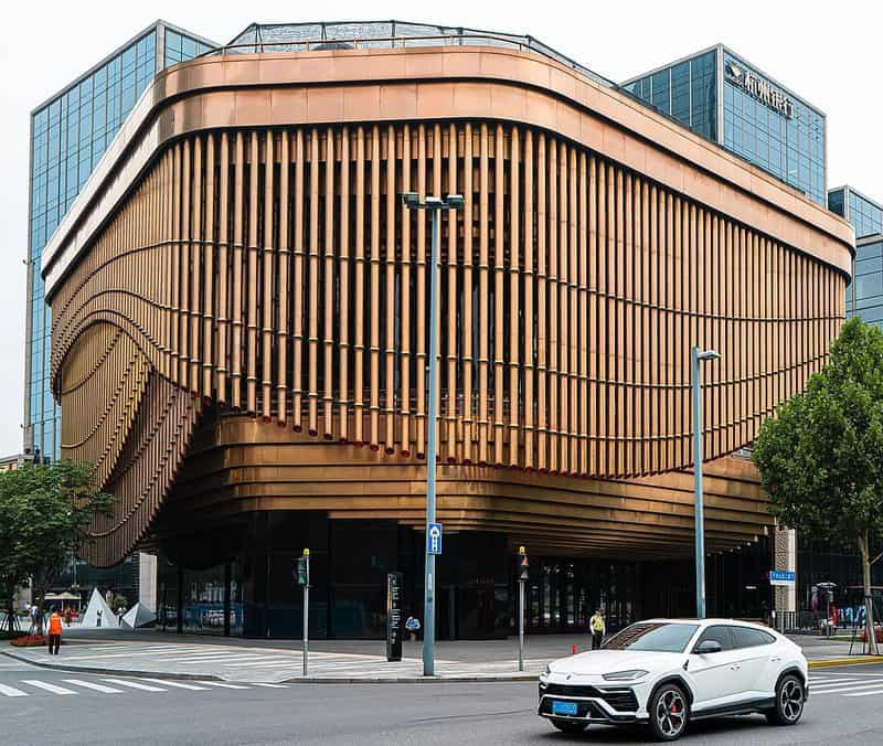2017년, 상하이는 ‘번드’라 불리는 유명 거리의 종착점을 예술과 문화의 중심지로 삼고자, 영국의 건축설계회사 포스터 + 파트너스와 협력하여 복합용도 건물을 개발했다. 이는 단순한 재개발 프로젝트를 넘어, ‘끊임없이 움직이는 건축물’이라는 혁신적 목표를 실현하는 단계였다. 움직이는 듯한 건축은 곡선을 통해 시각적 흥미를 유도한다. 번드 파이낸스 센터는 시간에 따라 외관이 실제로 변화하는 건물이다. 중국 전통 직조 기술에서 영감을 받아, 675개의 마그네슘 합금 튜브가 건물 외곽의 트랙 위에 매달려 있다. 이 튜브들은 하루 중 시각에 따라 서로 엮였다가 풀어지며, 건물의 외형을 끊임없이 바꾼다. 각 ‘장식들’은 마치 살아 움직이는 유기체처럼 작동하며, 관람객의 시선을 사로잡는다.
