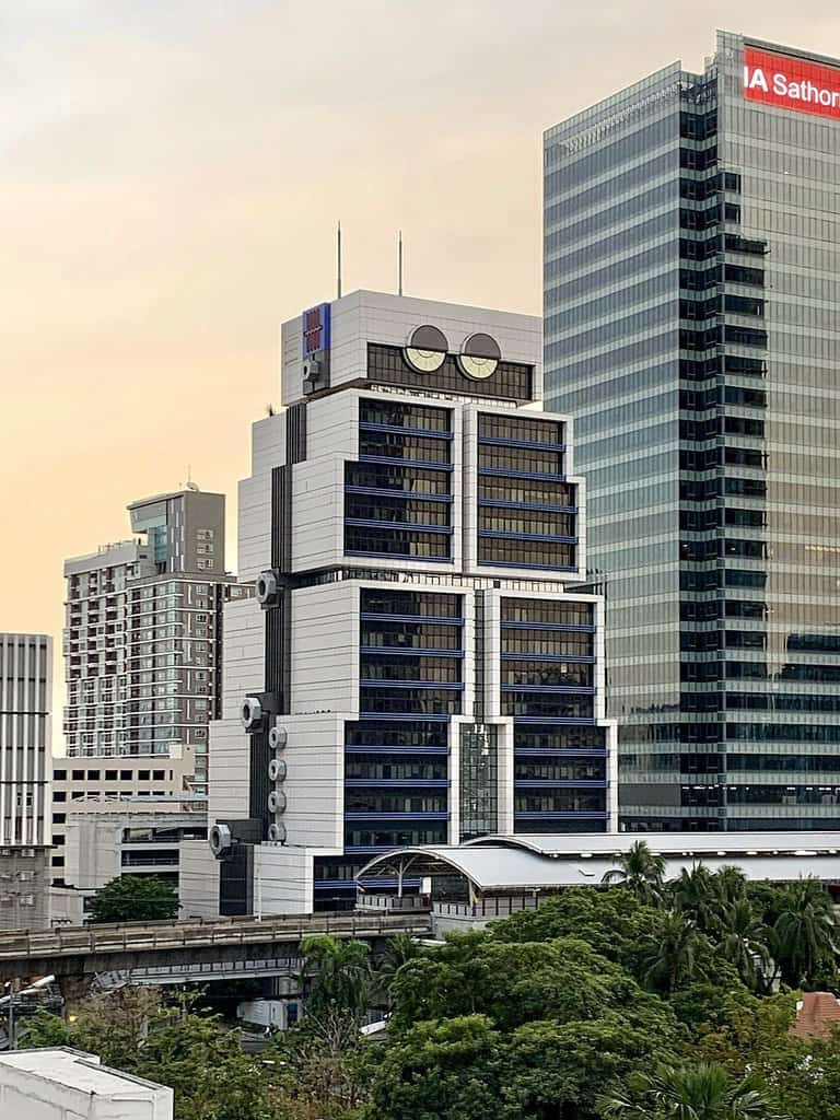 방콕의 20층짜리 로봇 빌딩은 원래 아시아은행 본사로 지어졌다. 이 미메틱 형태는 노골적인 광고보다는 세계인의 시선을 끌기 위한 목적이었다. 이 건축물은 은행이 기술 혁신에 헌신하고 있음을 시각적으로 표현하고자 한 것이며, 1980년대 아시아의 경제 번영과 포스트모던 디자인 혁신을 상징했다. 그러나 현재 이 상징적인 건물은 변화의 기로에 서 있다. 로봇 빌딩은 리모델링 중이지만, 구체적인 계획에 대해서는 거의 밝혀진 바 없다. 건물의 소유주인 UOB 태국은 기존 디자인을 존중하면서도 지속 가능한 방식으로 현대화할 것이라 밝혔지만, 건축가 수멧 줌사이는 이에 대해 실망을 표했다. 그는 현재 소유주에게 “너무 늦기 전에 다시 생각해달라,”라며, 호소를 보내고 있다.