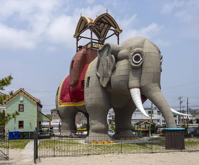 미국 뉴저지주 마게이트, 애틀랜틱 시티의 해변을 지켜보는 코끼리 루시