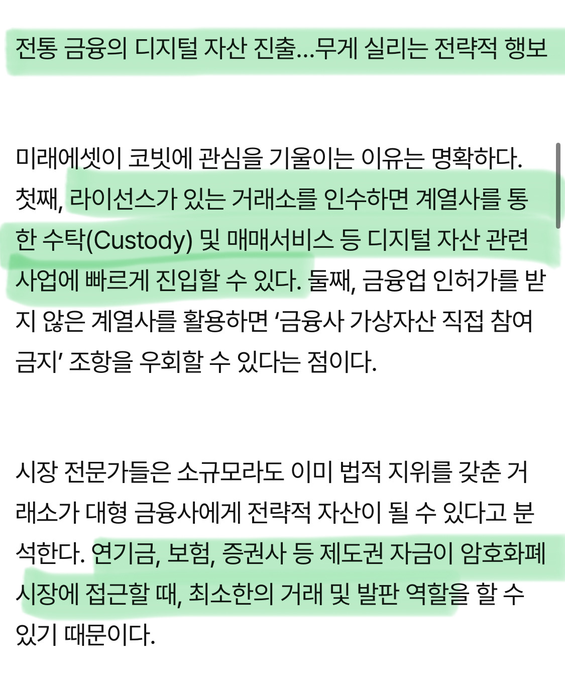 [여시뉴스데스크]미래에셋, 코빗 인수 추진…1,400억 원 규모 전통금융 첫 가상자산 진입 시도 작성자(본인닉네임).|작성시간25.12.30|조회수2,836 목록 댓글 2 글자크기 작게가 글자크기 크게가 출처https://www.tokenpost.kr/news/blockchain/319288 다음검색 현재 게시글 추가 기능 열기 북마크 공유하기 신고 센터로 신고 댓글 댓글 2 댓글쓰기 답글쓰기 댓글 리스트 작성자모닝글로리볶음 | 작성시간 25.12.30 코빗까지 계정 만들면 너무 많아서 안만들고 있었는데 미래에셋에서 해결해주는구나 작성자영앤리치리치엥 | 작성시간 25.12.30 미래에셋 진짜 열심히 하는 기업..ㅋㅋㅋ 댓글 전체보기