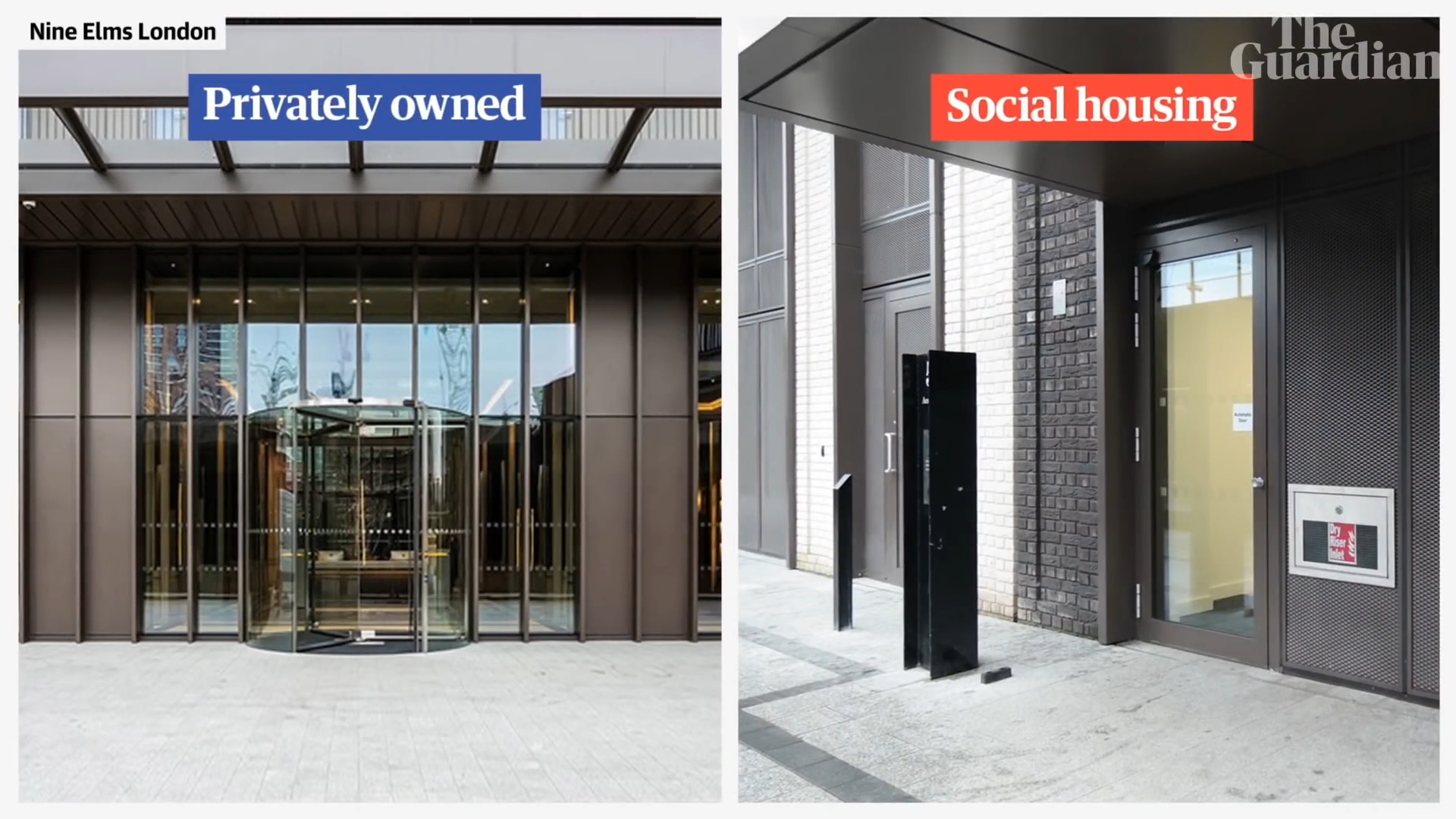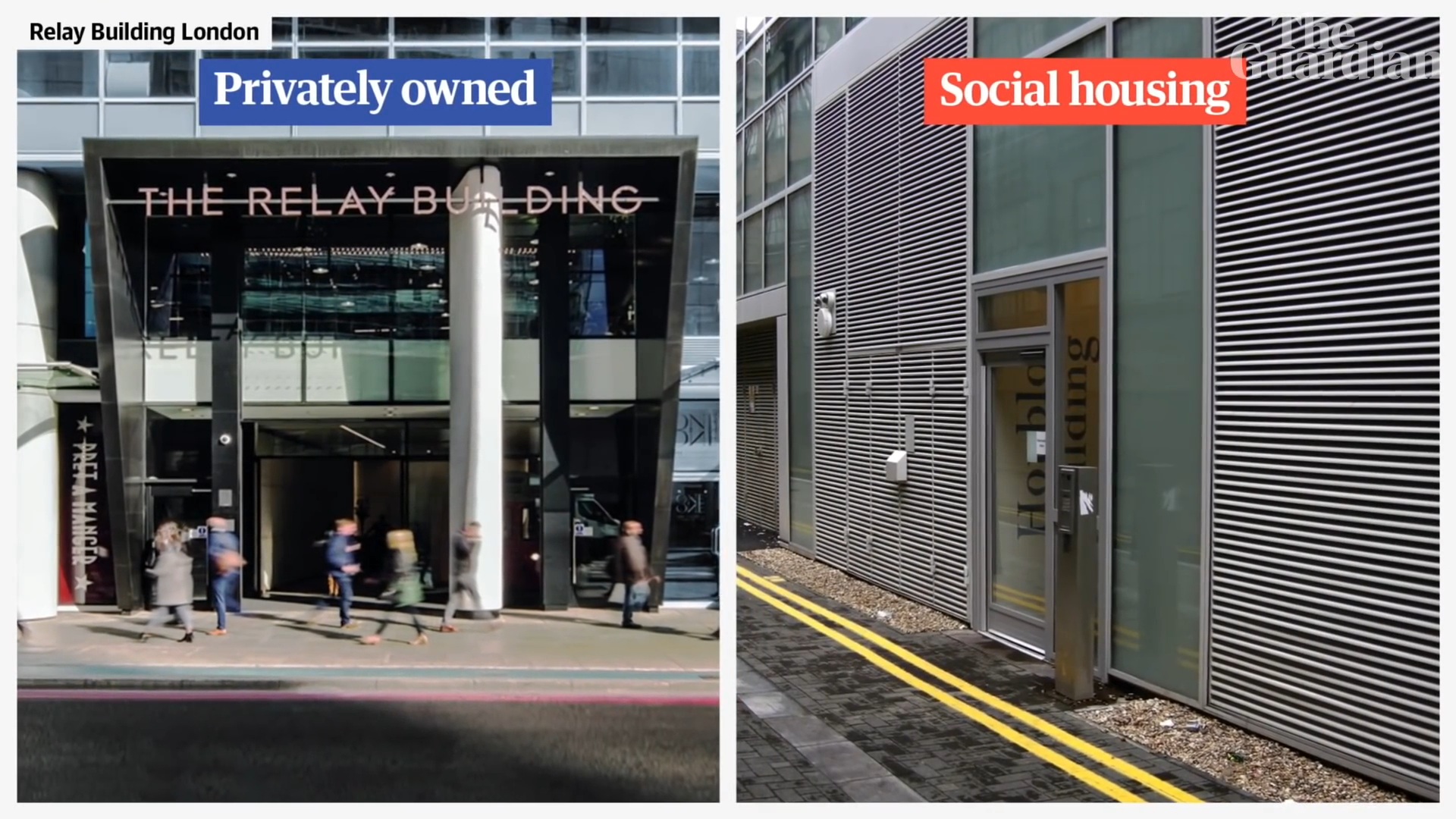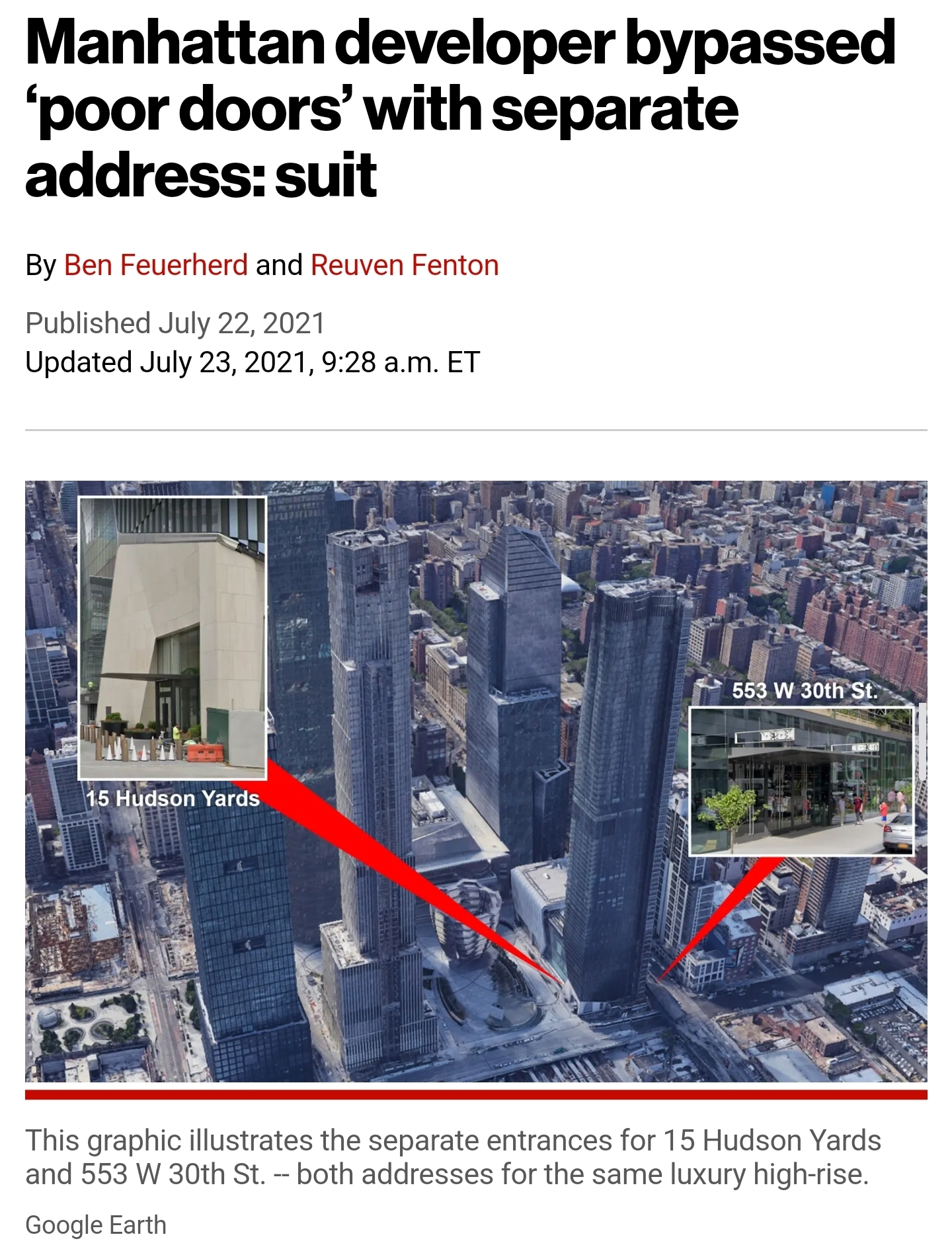 임대주택세대랑 일반세대 입구 따로 쓰고 임대세대는 수영장이랑 헬스장 루프탑이런..한국으로 치면 커뮤니티시설도 못씀