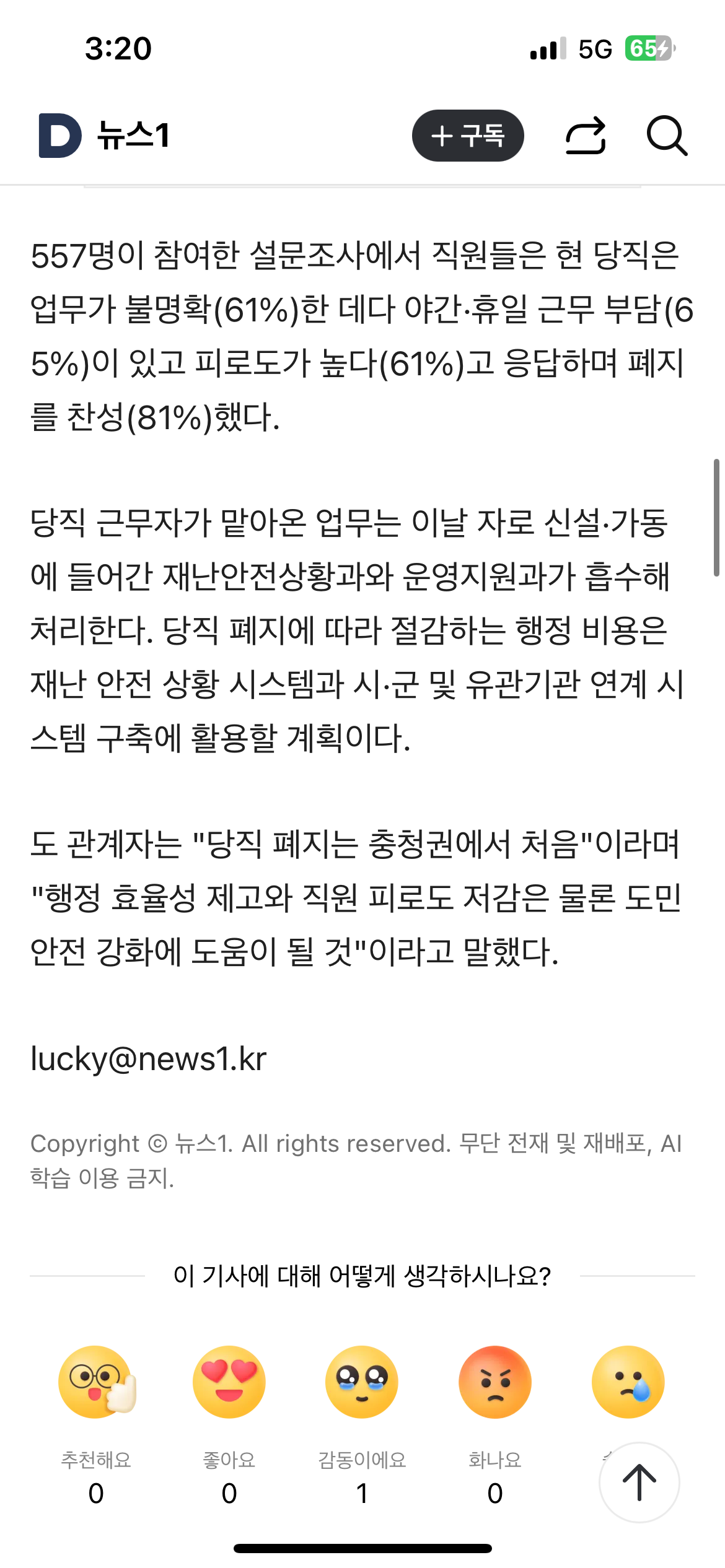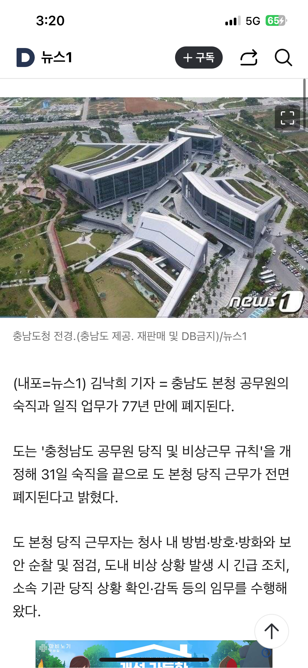 [여시뉴스데스크]충남도, 77년 만에 당직 근무 폐지…"행정 효율 제고" 작성자두배로돈모은다|작성시간25.12.31|조회수1,545 목록 댓글 2 글자크기 작게가 글자크기 크게가 출처: https://v.daum.net/v/20251231073643394 다음검색 현재 게시글 추가 기능 열기 북마크 공유하기 신고 센터로 신고 댓글 댓글 2 댓글쓰기 답글쓰기 댓글 리스트 작성자호구마호박 | 작성시간 25.12.31 개부럽다 작성자헙허 | 작성시간 25.12.31 부러워 우리도 없애주라ㅠ 댓글 전체보기