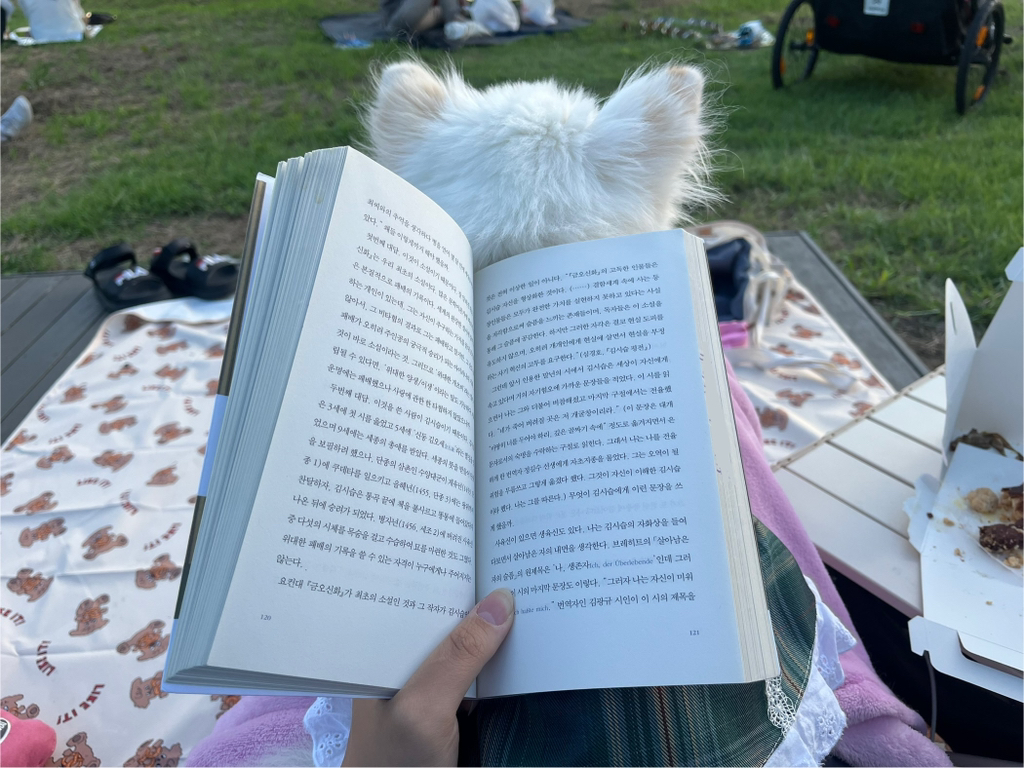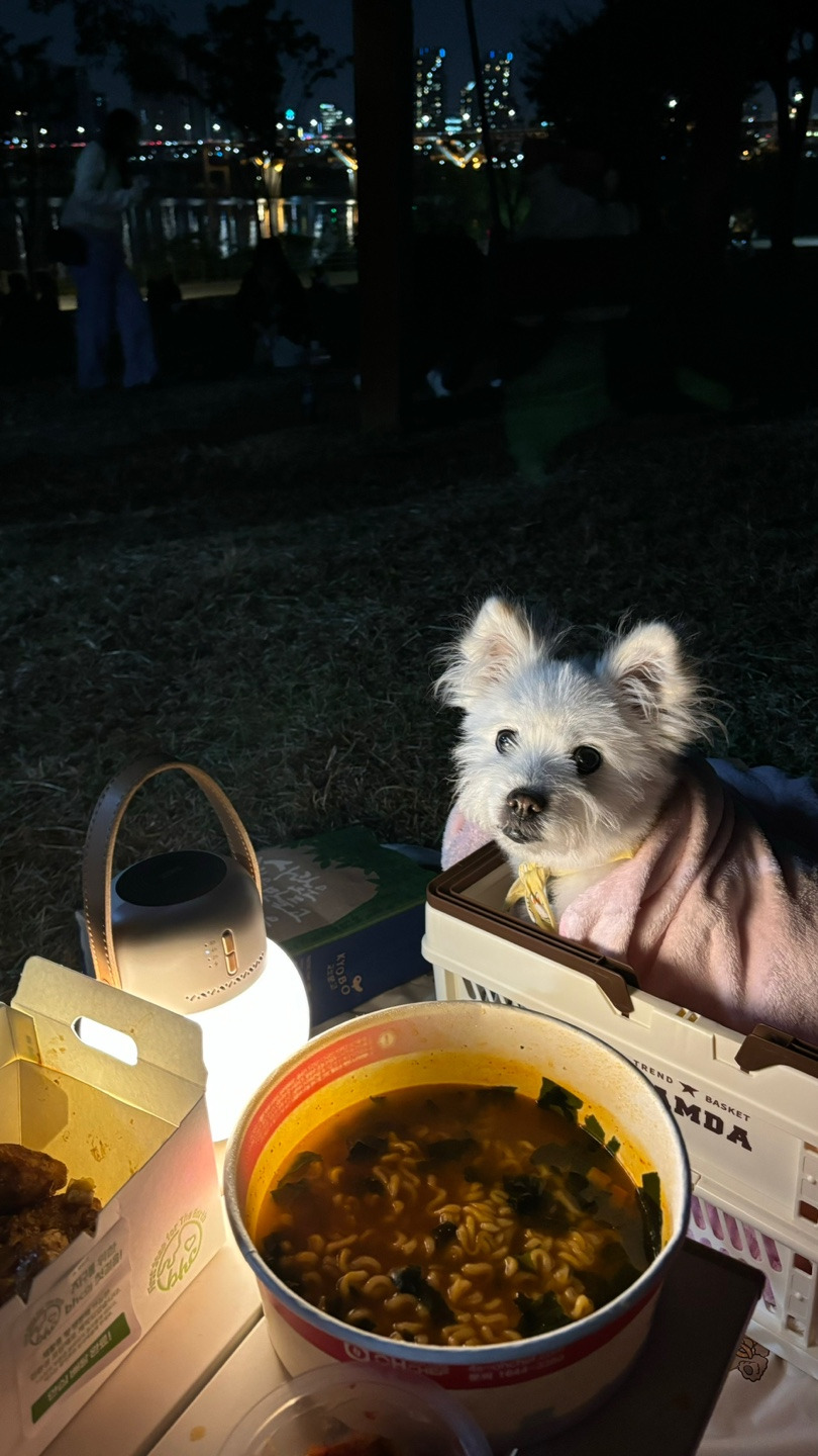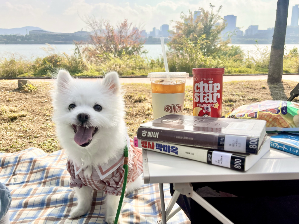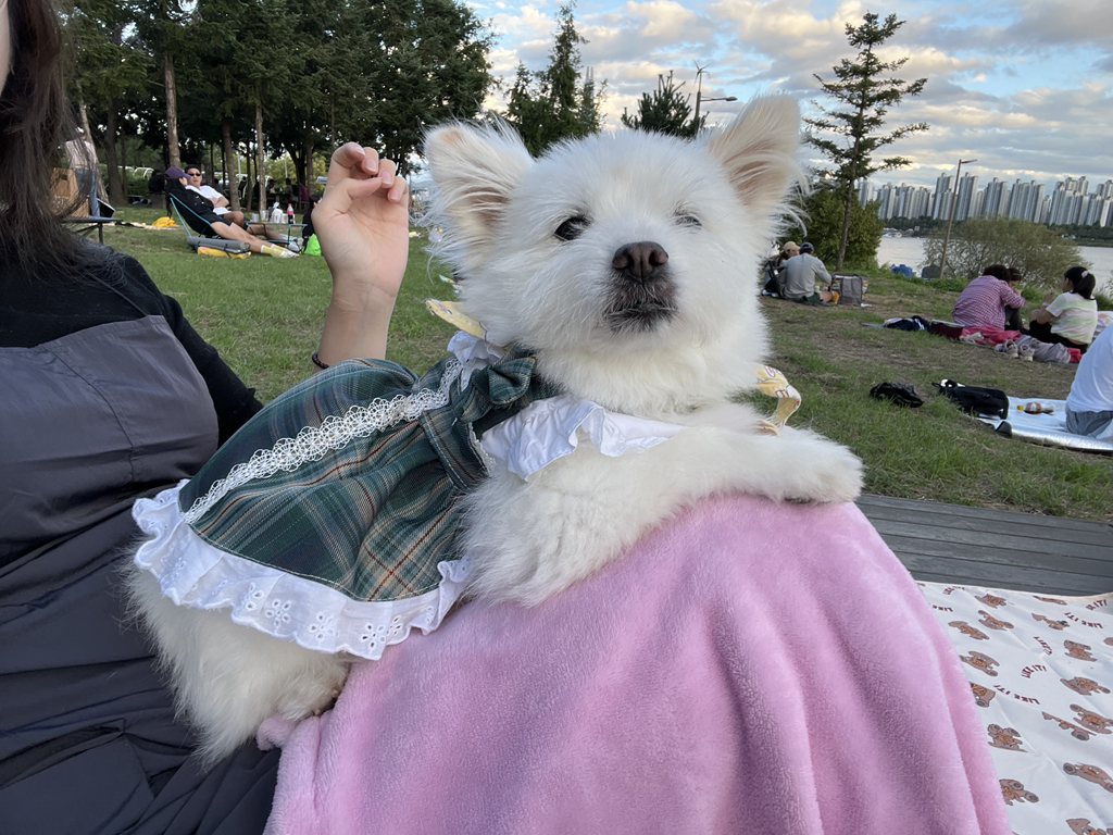 한강 갔는데 실수로 리드줄 못챙겨서