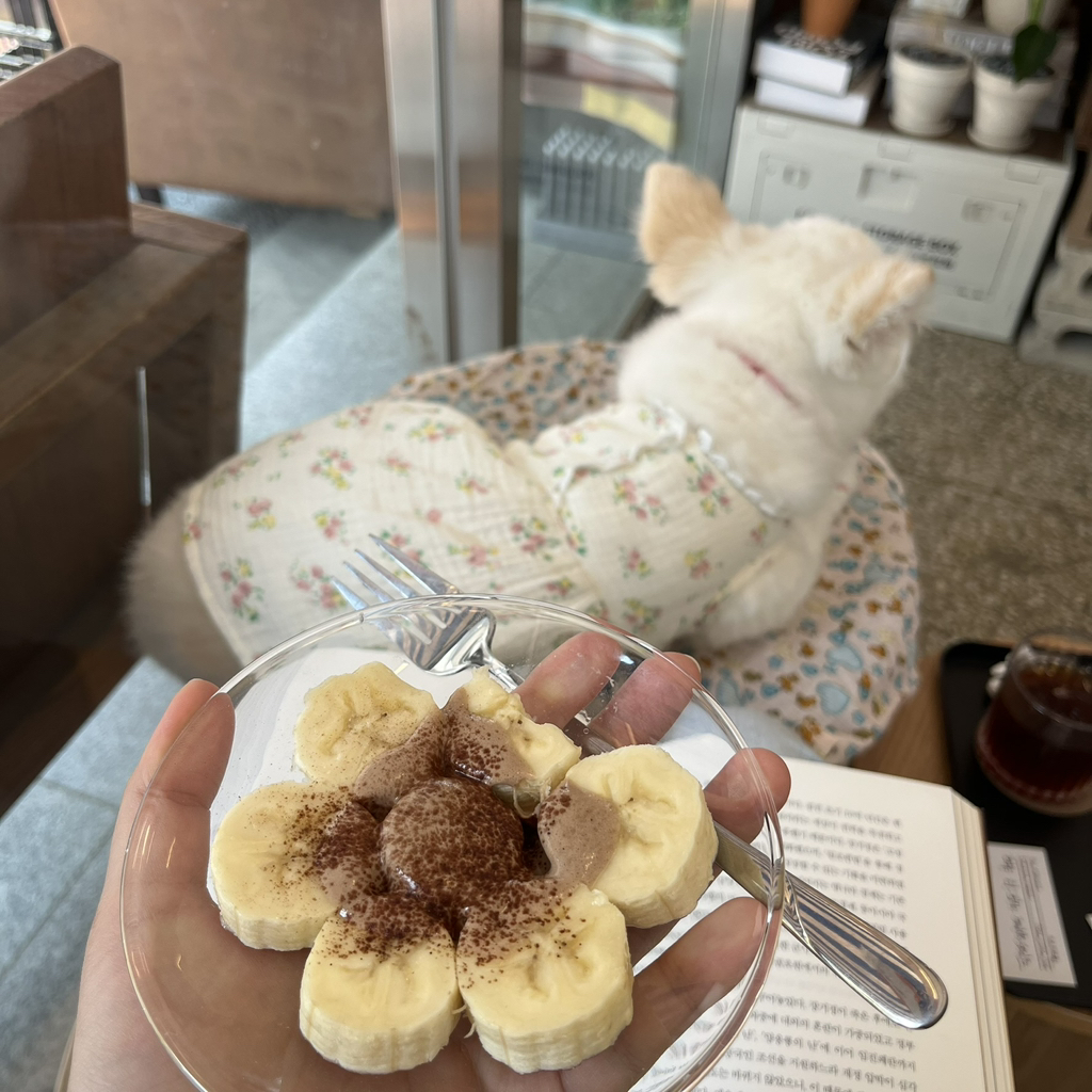 바나나 초코 안묻은데 잘라서 줬는데 카페 바닥에 뱉음