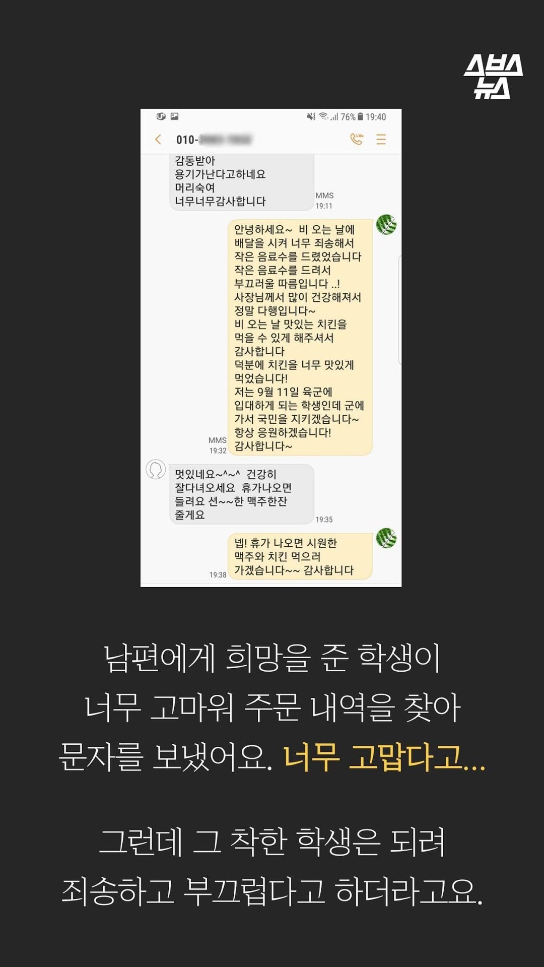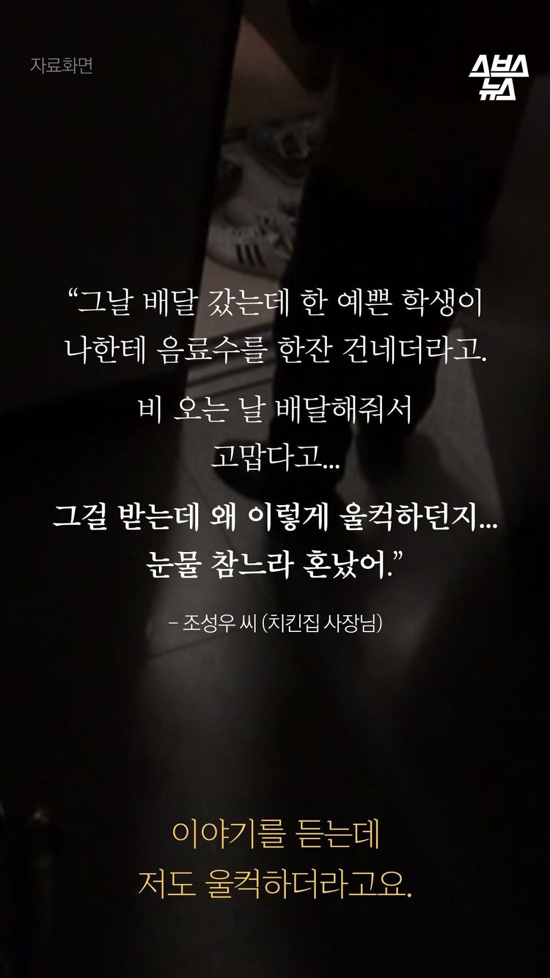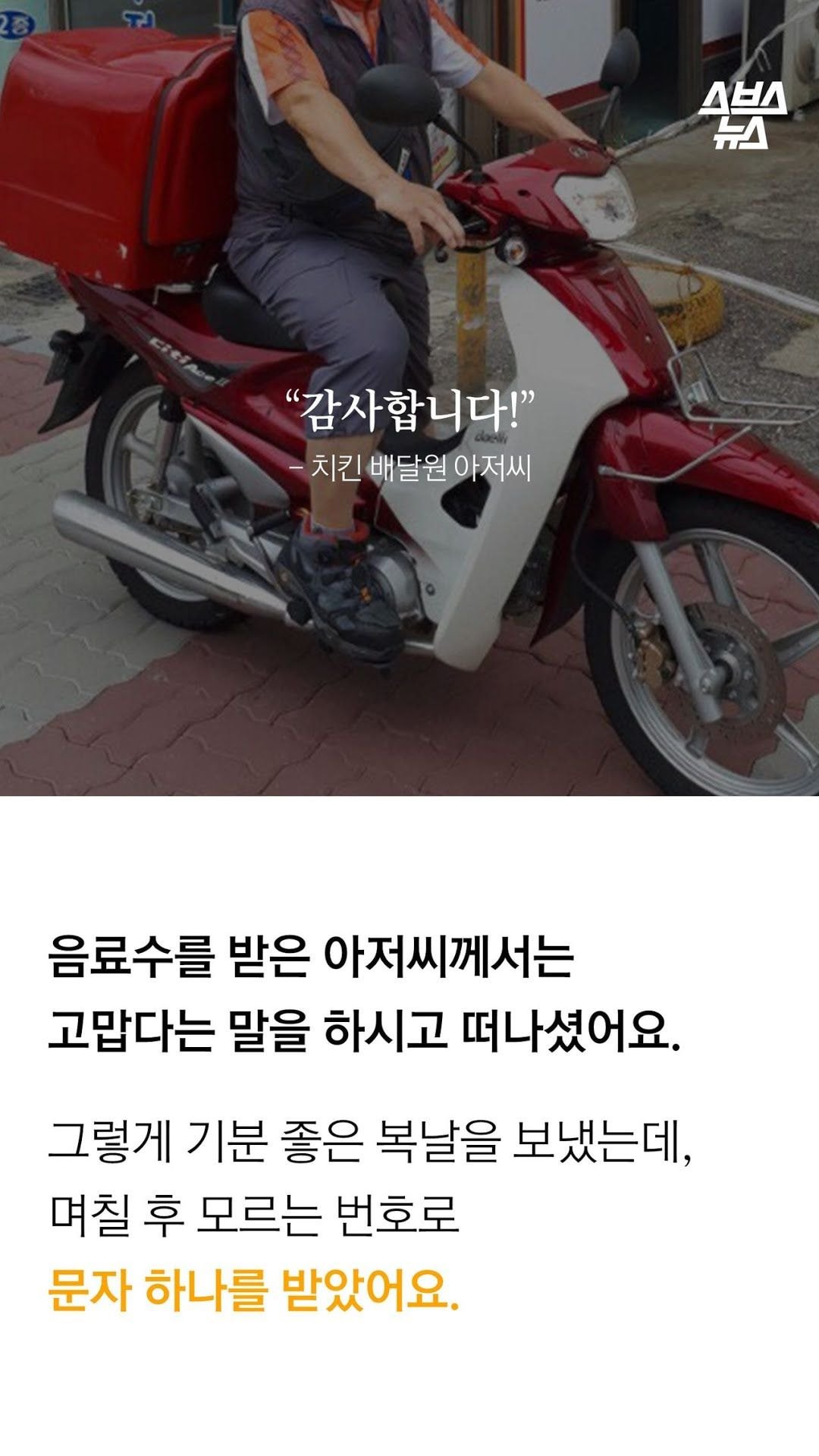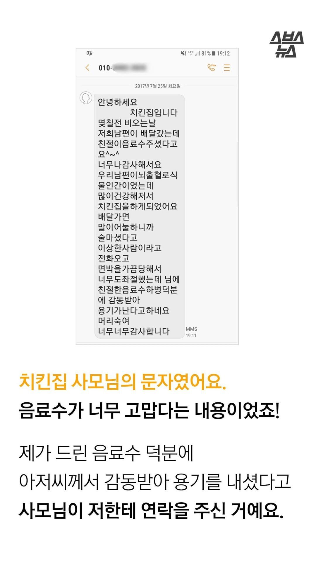 [스크랩] [흥미돋]비 오는 날 치킨 배달원에게 음료수 건네고 받은 문자.jpg 작성자라이도|작성시간26.01.01|조회수13,939 목록 댓글 14 글자크기 작게가 글자크기 크게가 출처: https://theqoo.net/square/3265984219 다음검색 스크랩 원문 : *여성시대* 차분한 20대들의 알흠다운 공간 현재 게시글 추가 기능 열기 북마크 공유하기 신고 센터로 신고 댓글 댓글 14 댓글쓰기 답글쓰기 댓글 리스트 작성자춘식이는집순이 | 작성시간 26.01.01 훈훈하다 훈훈해 마음이 따수워져 작성자2026년최고부자 | 작성시간 26.01.01 ㅜㅜ 작성자kioun | 작성시간 26.01.01 ㅠㅠㅠㅠㅠㅠ 작성자카이아 거버 | 작성시간 26.01.01 와 오늘따라 왜이렇게 훈훈한 글이 많이 올라오나 했더니 여시가 올려주고 있었구나 보는 내내 울기도 웃기도 하면서 이 추운 날에 마음이 너무 따뜻해졌어 여시 고마워 복 많이 받아! 작성자muso | 작성시간 26.01.01 어휴ㅠ눈물나 댓글 전체보기