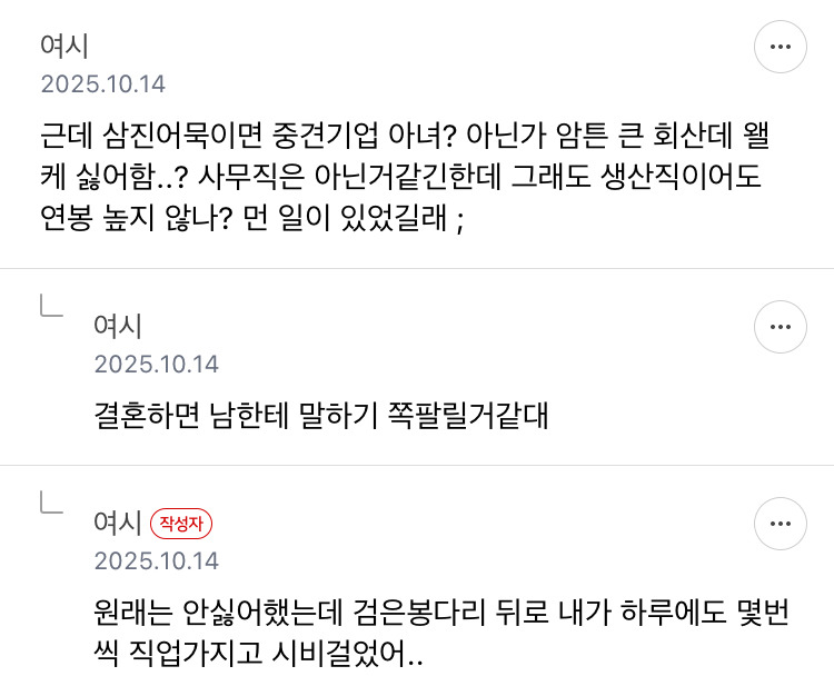글쓴 여시가 너무 싫어해서 퇴사한다함