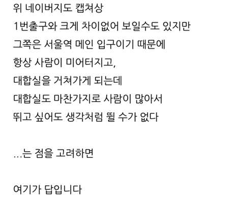 [스크랩] [흥미돋]서울역 1호선에서 ktx역 3분컷하기 작성자DreamCatcher|작성시간26.01.01|조회수15,817 목록 댓글 29 글자크기 작게가 글자크기 크게가 출처 : https://m.blog.naver.com/fornaboa/221762367186다들 3분컷 합시다 🫶🏻문제시 차은우랑 결혼 다음검색 스크랩 원문 : *여성시대* 차분한 20대들의 알흠다운 공간 현재 게시글 추가 기능 열기 북마크 공유하기 신고 센터로 신고 댓글 댓글 29 댓글쓰기 답글쓰기 댓글 리스트 작성자밤티님 | 작성시간 26.01.01 나를 여러번 살린 귀인.. 작성자소중하다 | 작성시간 26.01.02 우와 나도 참고해야지 작성자이킁에킁 | 작성시간 26.01.02 나를 살림.. 작성자안태주. | 작성시간 26.01.02 진짜 이거보고 세이프함... 은인이야 작성자제21대대통령이재명 | 작성시간 26.01.04 진짜 대박이다 엄마랑 지금 왔는데 걸어서 천천히 가도 몇분 안걸려 댓글 전체보기