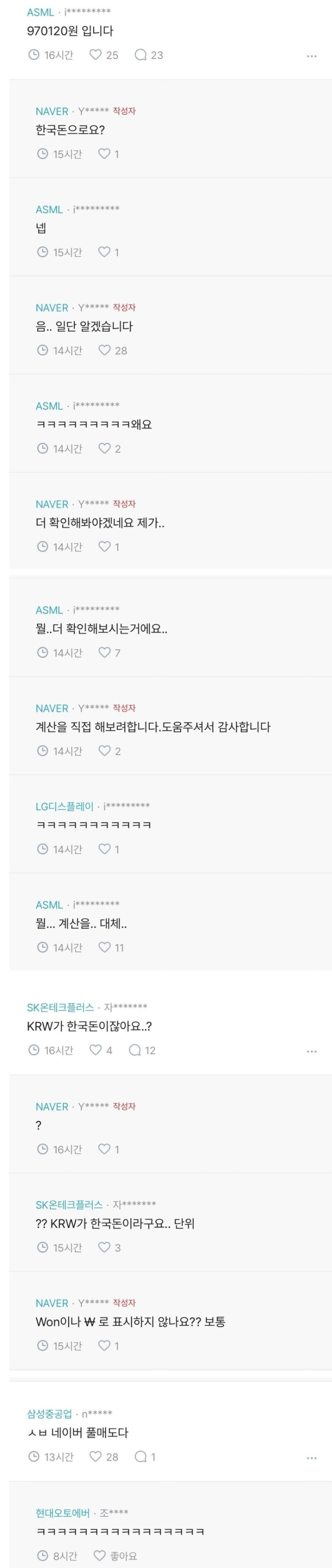 [흥미돋]KRW 상식이다 vs 모를 수 있다 작성자계절 틈에 잠시 피는 낯선꽃처럼|작성시간26.01.01|조회수38,983 목록 댓글 318 글자크기 작게가 글자크기 크게가 출처: https://m.cafe.daum.net/subdued20club/ReHf/5532158?svc=cafeappKRW 상식이다 vs 모를 수 있다출처: 여성시대 초코초코촠더쿠 - KRW 상식이다 vs 모를 수 있다여기를 눌러 링크를 확인하세요theqoo.netm.cafe.daum.net저런 사람도 네이버를 다니는데......ㅠㅠㅠㅠㅠㅠㅠAㅏ......보너스투표 다음검색 현재 게시글 추가 기능 열기 북마크 공유하기 신고 센터로 신고 댓글 댓글 318 댓글쓰기 답글쓰기 댓글 리스트 작성자로재파스타 | 작성시간 26.01.03 ㅅㅂ계산을 왜하는데 작성자경제학 콘서트 | 작성시간 26.01.03 검색을 안 해보고 블라에 올린 게... 관종 어그로꾼같은데 작성자비아이 | 작성시간 26.01.03 ...뭐 어떻게 살아온건데 작성자새우잎새만두 | 작성시간 26.01.03 아 ㅋㅋㅋㅋㅋ 작성자왕빛나 | 작성시간 26.01.06 지붕킥 정보석같다 ㅋㅋㅋㅋ 댓글 전체보기