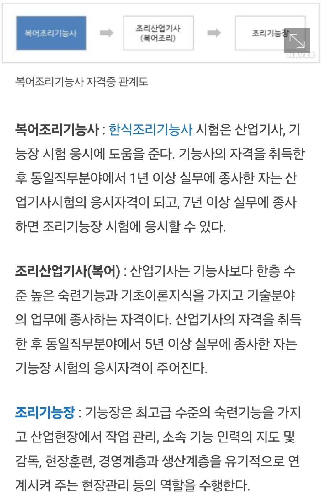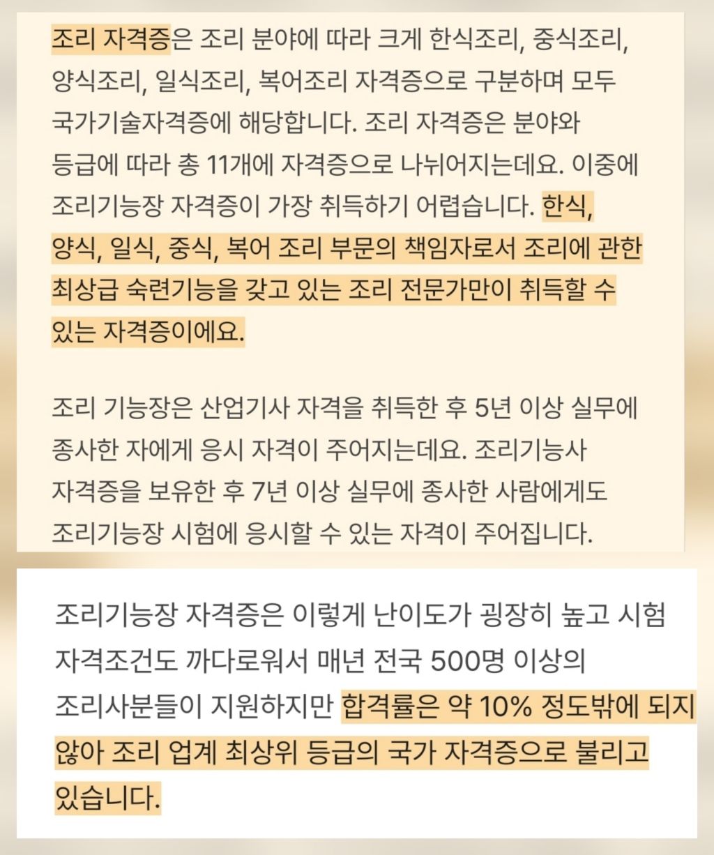 조리기능장은 조리 분야 국가기술 자격증 중 가장 최고급