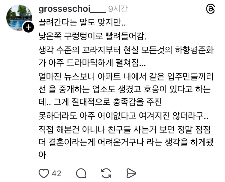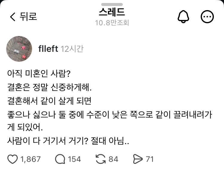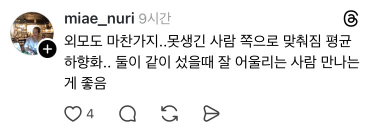 [스크랩] [흥미돋]아직 미혼인 사람? 사람 다 거기서 거기? 절대아님.jpg 작성자Rich|작성시간26.01.03|조회수8,611 목록 댓글 17 글자크기 작게가 글자크기 크게가 출처: 여성시대 Rich여시만 봐도 못생긴 남연 ❤️ 여자 사귀면닮았다는 댓글 엄청 많음글고 결혼까지 안 가도서비스직하는 여시들중에 커플 끼리끼리라고말하는 여시들 많음 다음검색 스크랩 원문 : *여성시대* 차분한 20대들의 알흠다운 공간 현재 게시글 추가 기능 열기 북마크 공유하기 신고 센터로 신고 댓글 댓글 17 댓글쓰기 답글쓰기 댓글 리스트 작성자나는나야신조 | 작성시간 26.01.03 ㄹㅇ 작성자리리피리 | 작성시간 26.01.03 근데 하향된다는건 비공감 내주위는 보통 다 상향자쪽에 맞춰져서 살던데 작성자새우탕면맛있어 | 작성시간 26.01.03 그래서 끼리끼리가 되는건가?? 작성자비혼이라서다행 | 작성시간 26.01.03 안할거라 ㄱㅊ~~ 작성자푸드케이크 | 작성시간 26.01.04 ㄹㄹ 댓글 전체보기