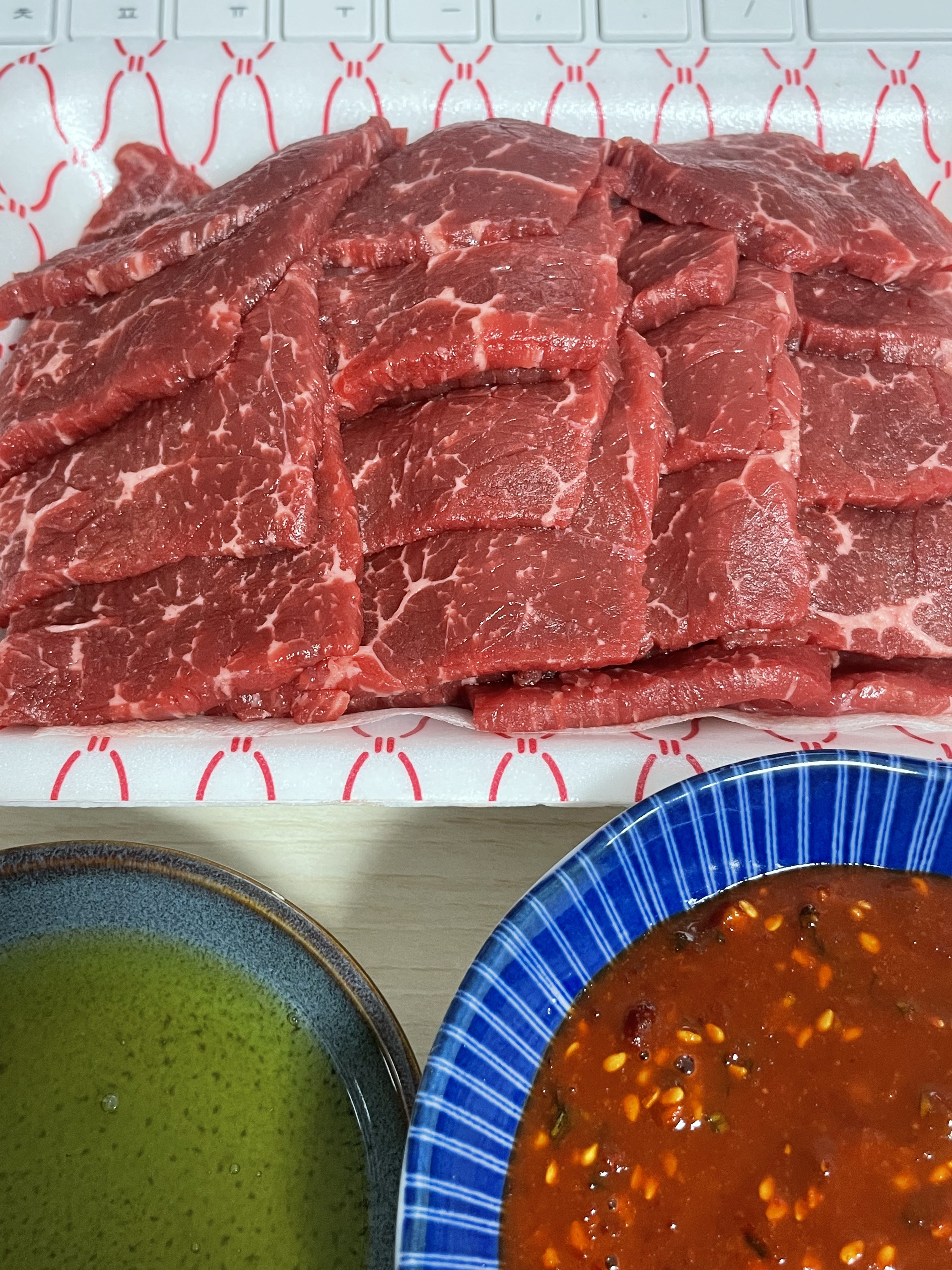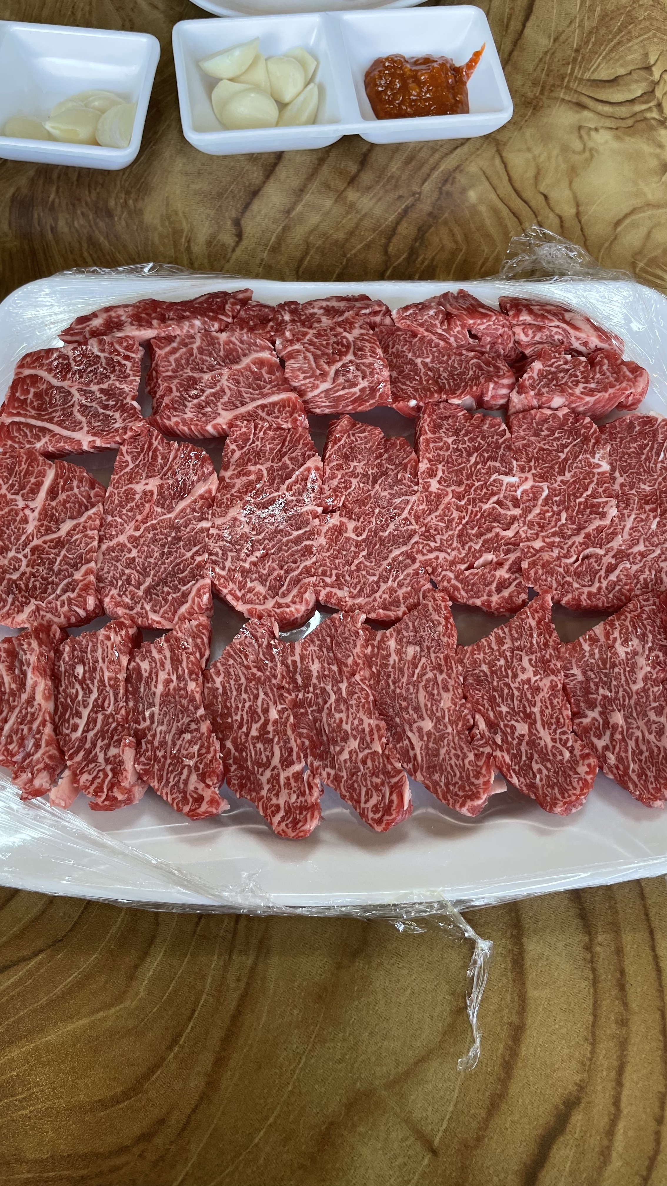 정육점에서 육사시미 사다가 소금기름장과