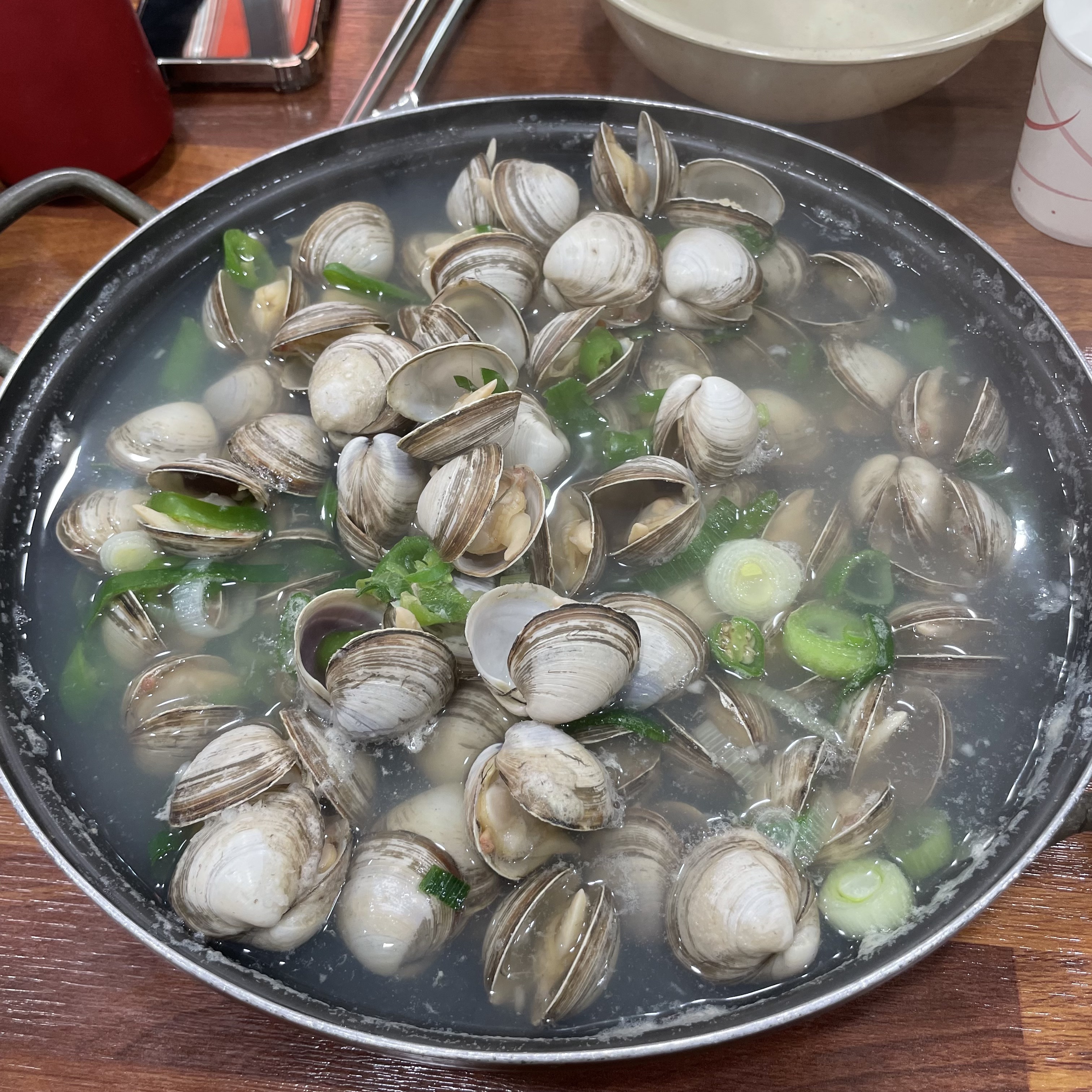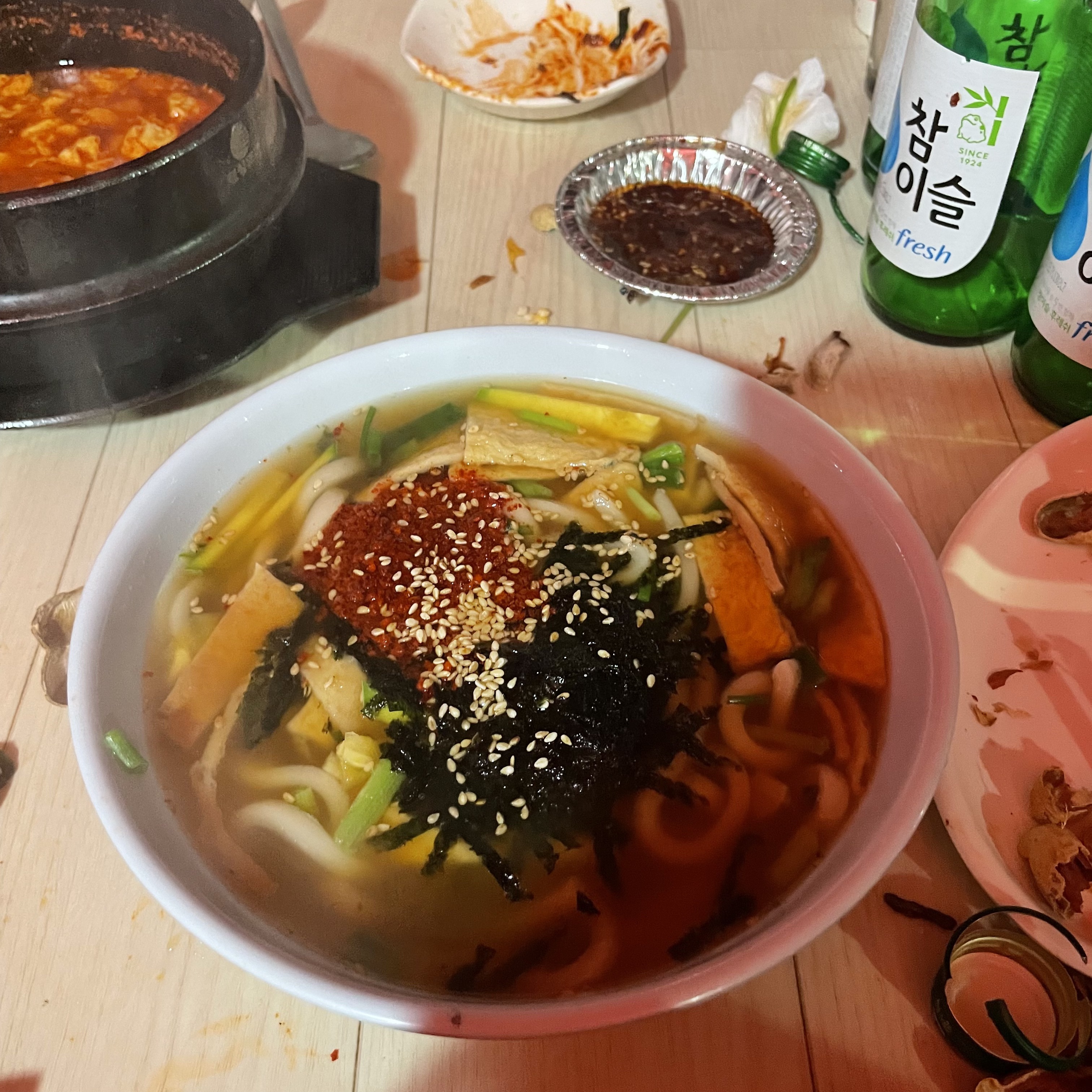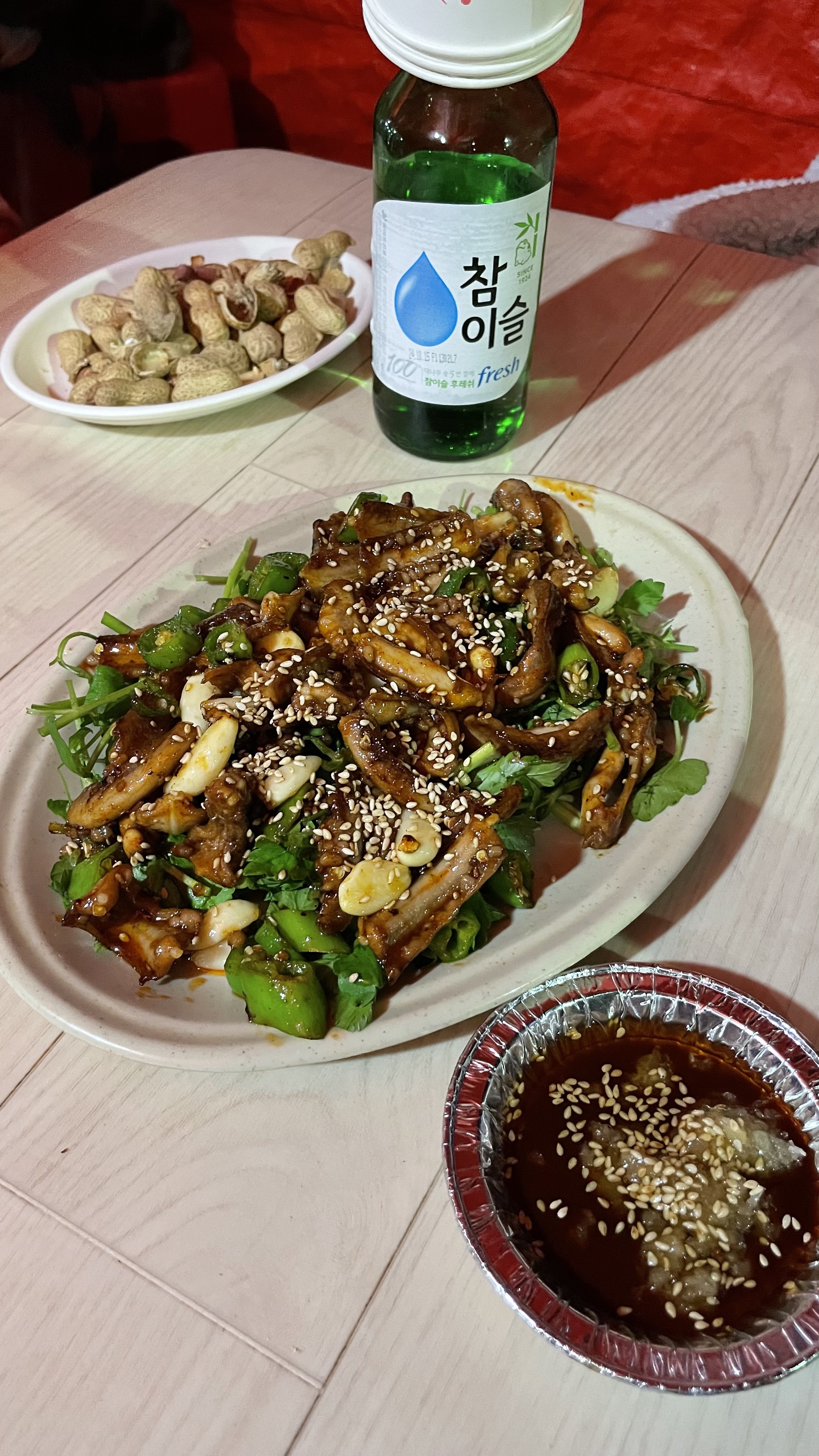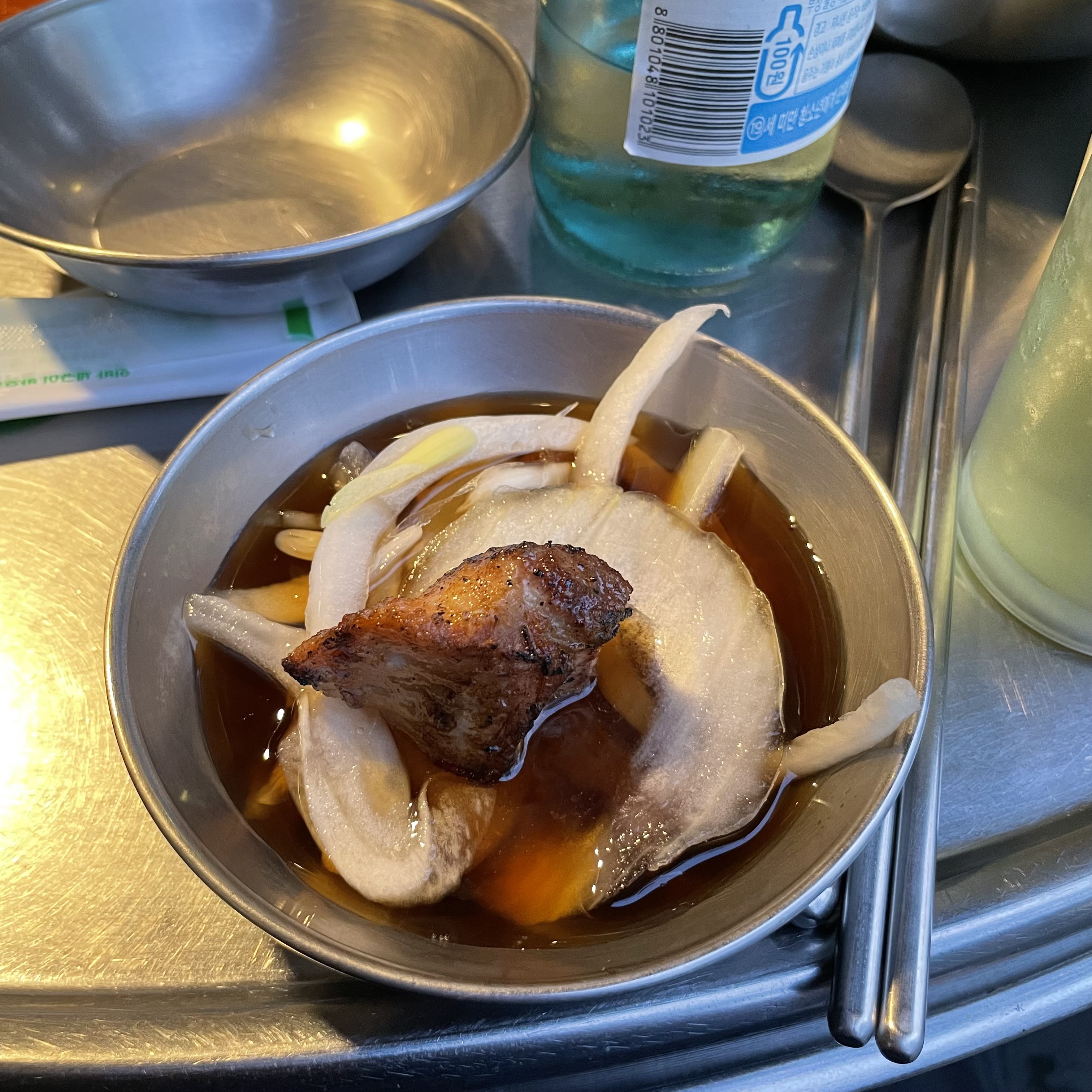 기본 상차림에 주시는 오징어국으로만 소주 2병이여