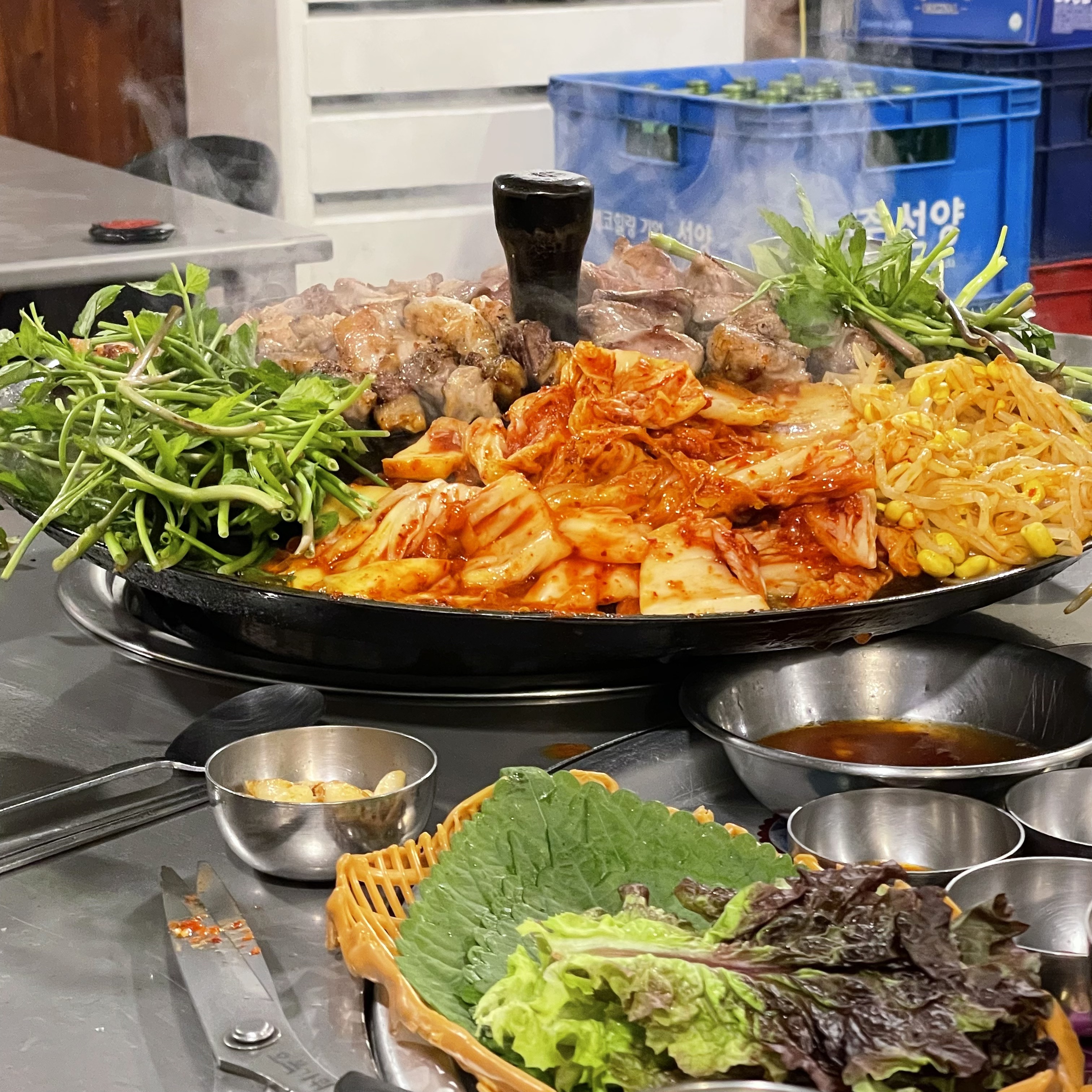 묵은지 구워먹는게 맛있고 갈매기살이 맛있더라고