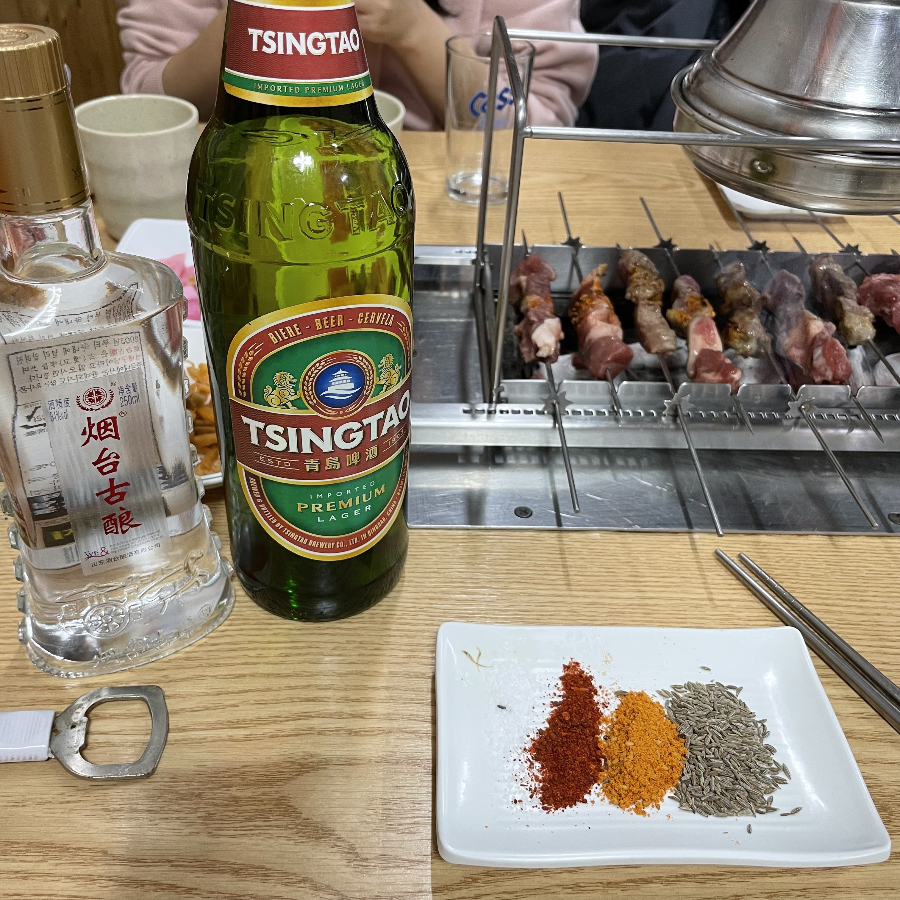 양꼬치 먹을땐 칭타오+언태고량 섞어서 마시기