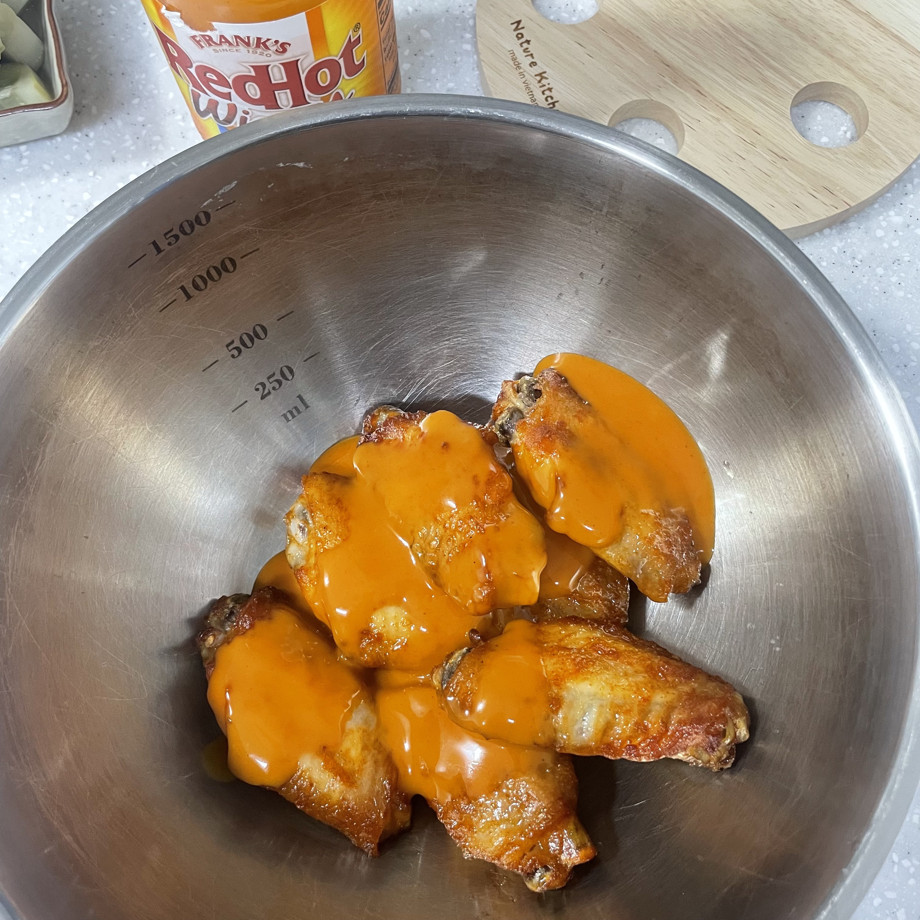 버팔로윙 구워서 핫소스에 절이면 소맥안주