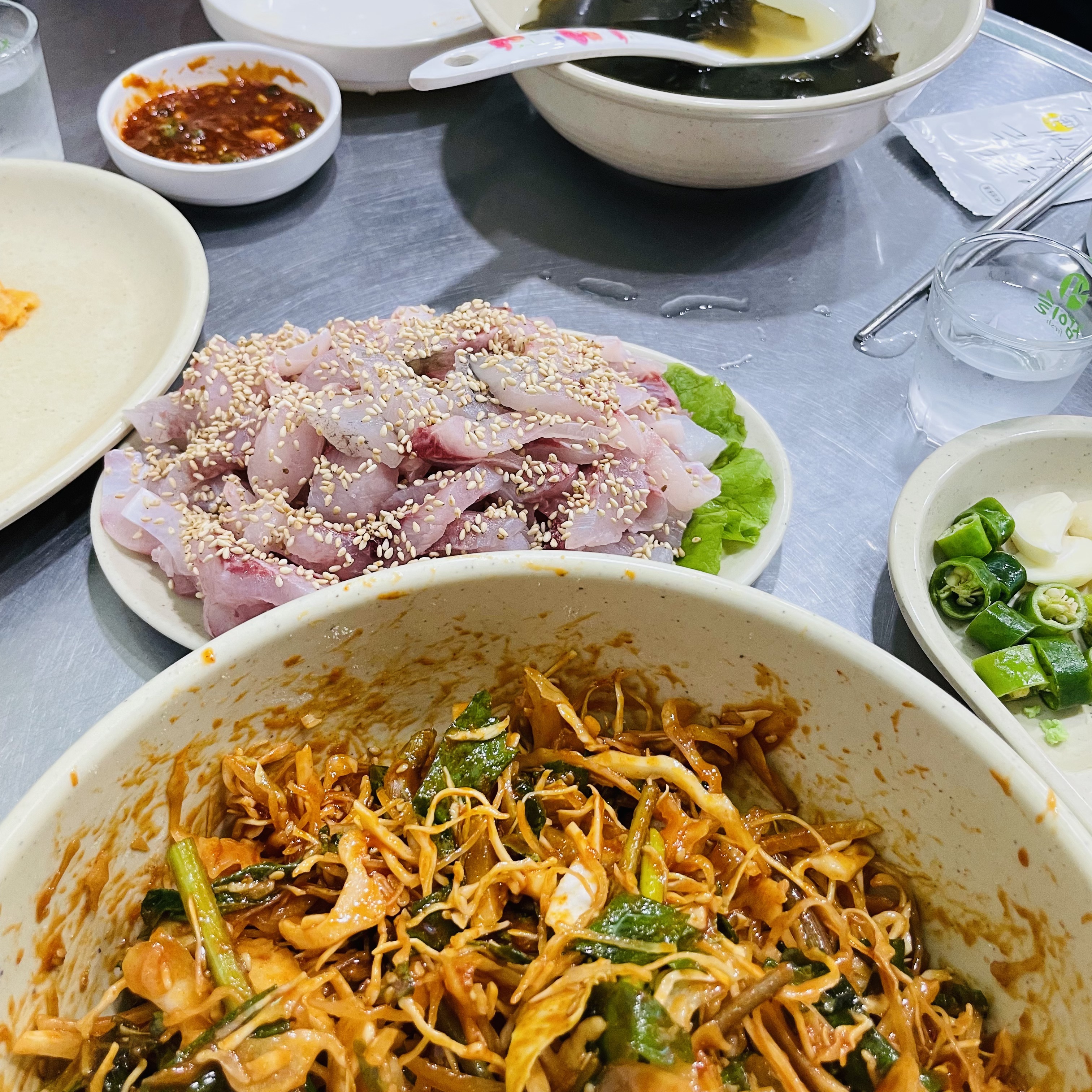 셀프바에서 초장 가져다가 자리마다 있는 들깨가루 섞어서