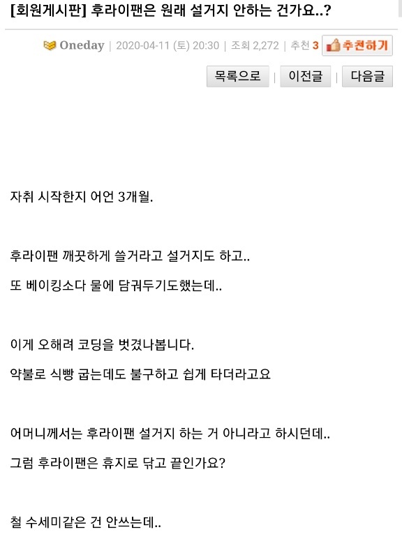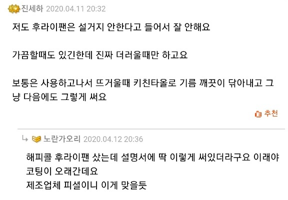 작성자Apple wapch 작성시간 26.01.06 우리집은 무조건 설거지 하는데 프라이팬 금방 금방 망가짐...매일 버리고 새로 사서 한번 안 닦고 써볼까 고민중