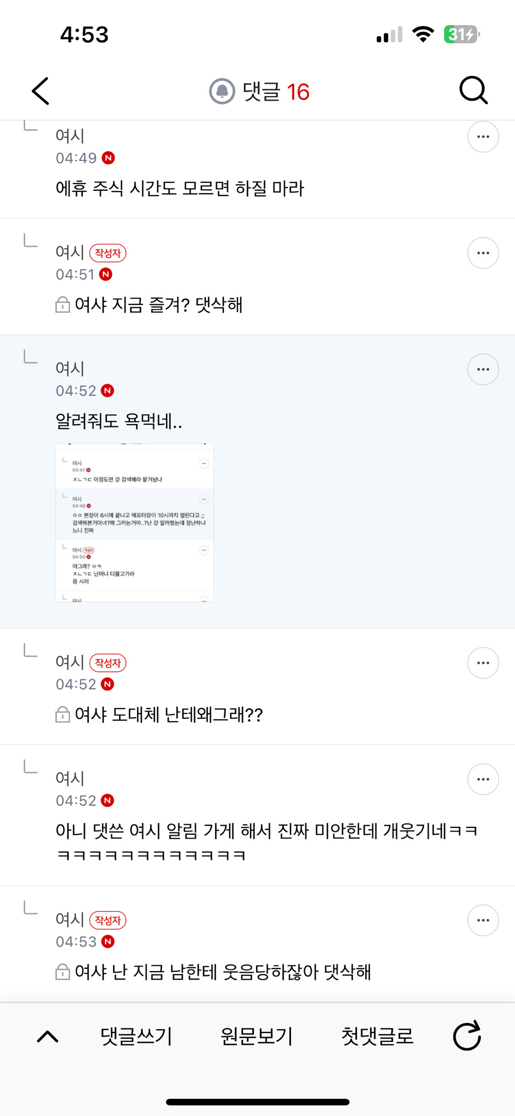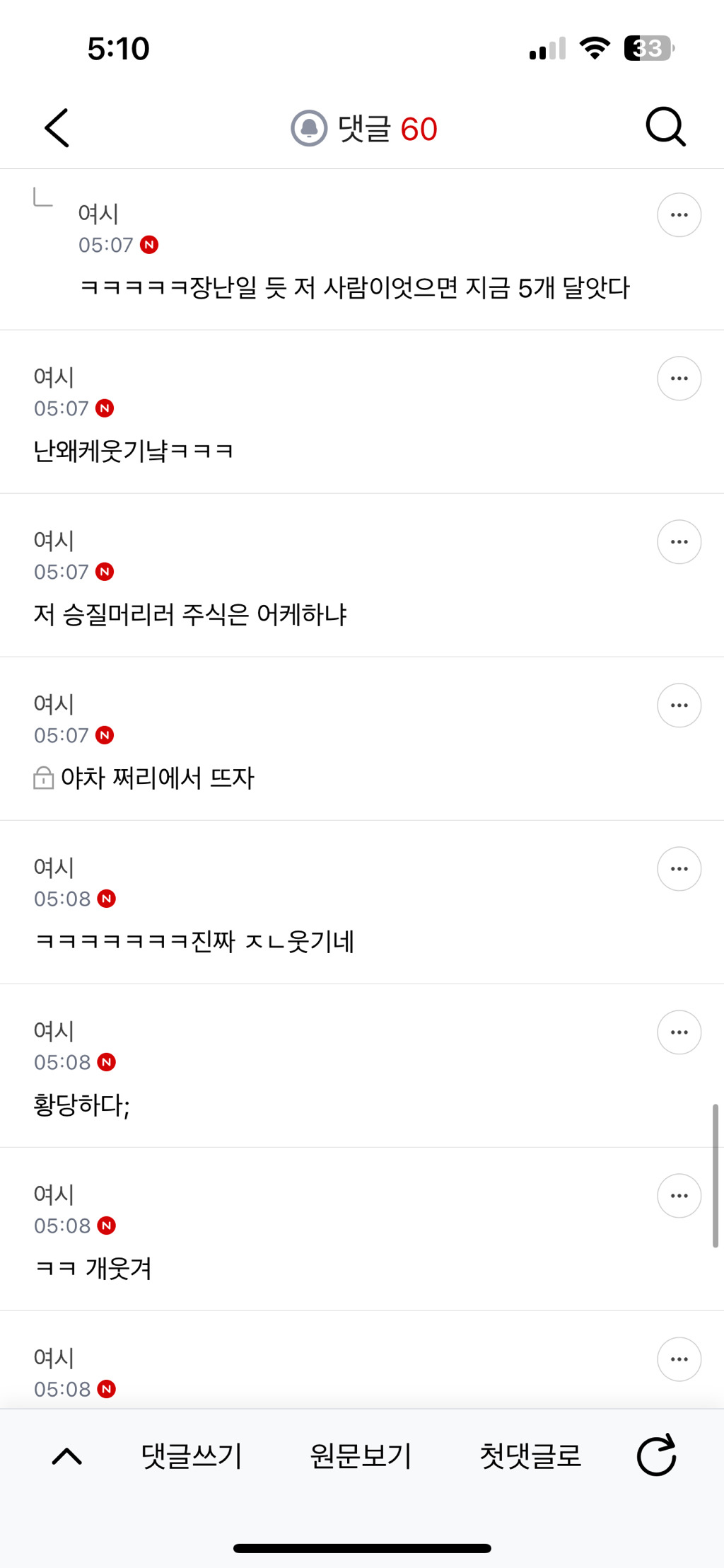 작성자똥가루를날려 방구를 더크게터뜨려 작성시간 26.01.05 야차 원조는 남초발이긴한데 여자도 쓰긴혀…근데 진짜 저 여시는 정체가멀까..ㅋㅋㅋㅋㅋㅋㅋ 인터넷 처음하는사람 같다는거 ㄹㅇ
