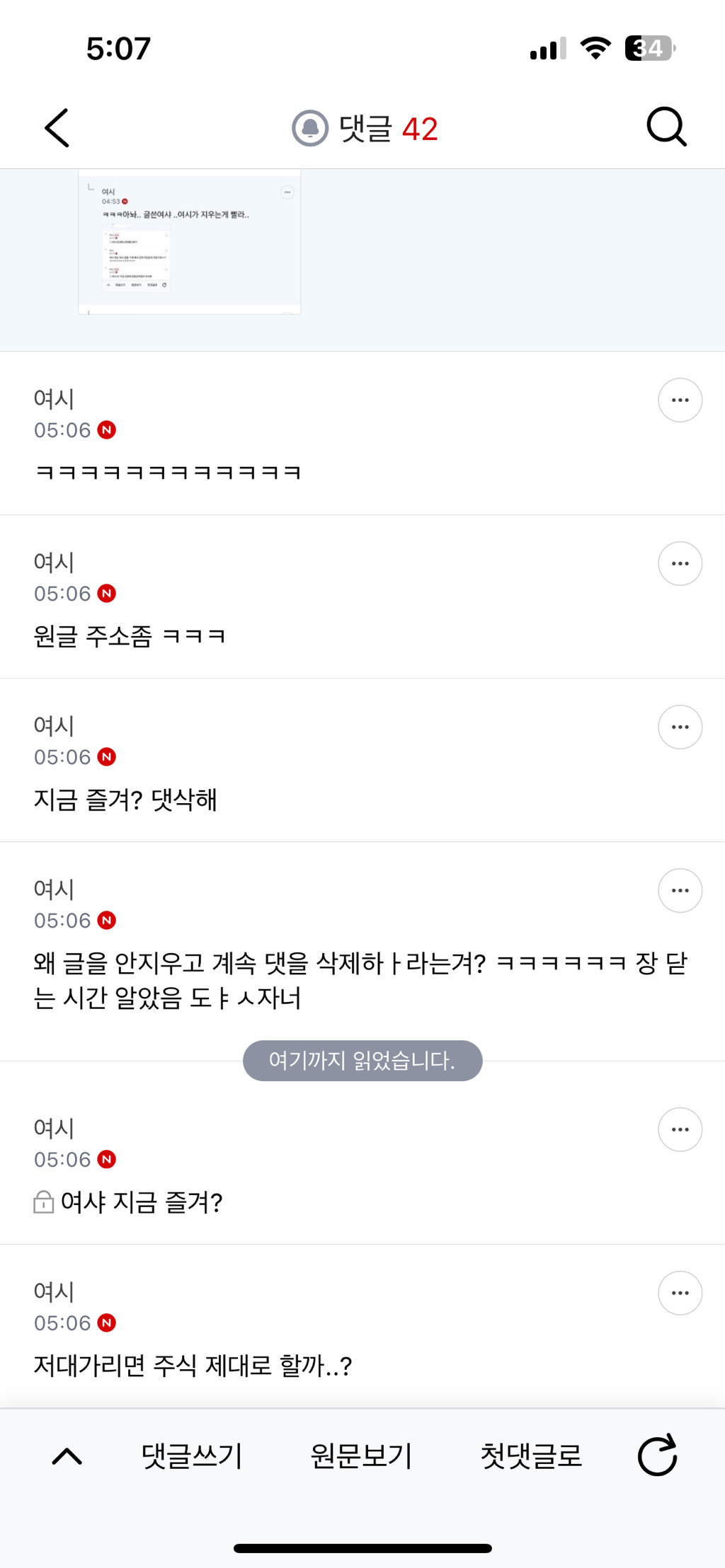 글 지우라하고 쩌리에서 야차 뜨자고 함