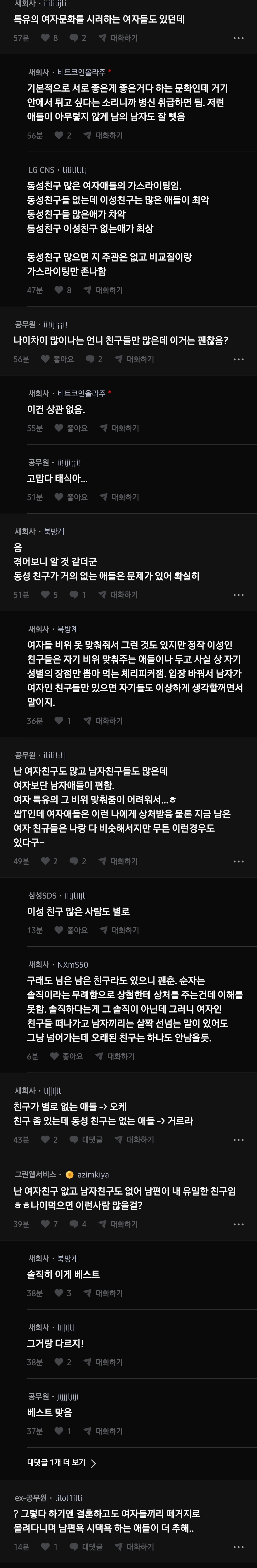 작성자블렌딩 작성시간 26.01.05 여자도 여자 나름이지... 죄다 남미새여서 멀어지다보니 친구 없음 물론 남사친도 X