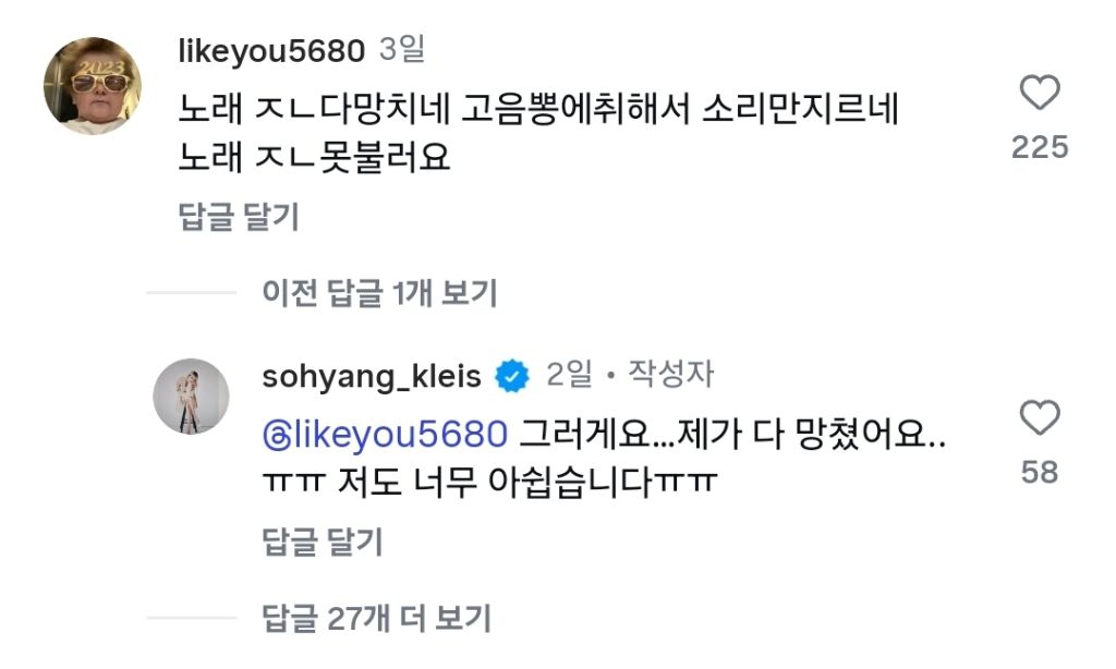 작성자어쩔디니 작성시간 26.01.06 100을 잘하고 하날 삐끗했는데 저렇게 죽일듯 까네;; 누구는 노래 개못부름 이러면서 밈으로 소비해주면서 ㅋㅋㅋ 아 진심 환멸나